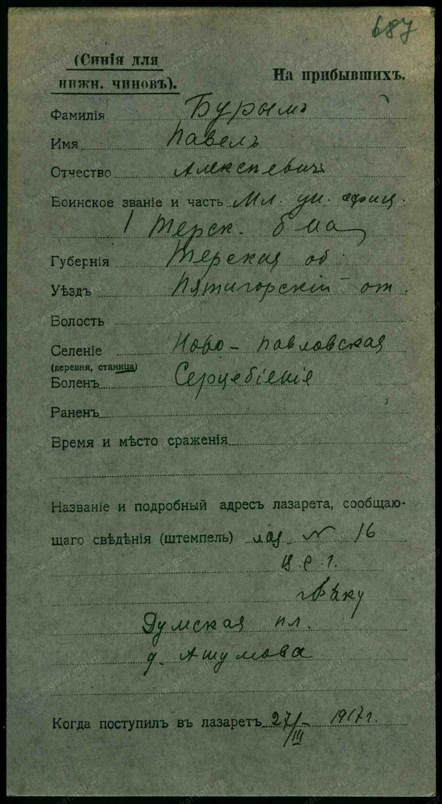 Фонд Картотека бюро учета потерь в Первой мировой войне (офицеров и солдат)