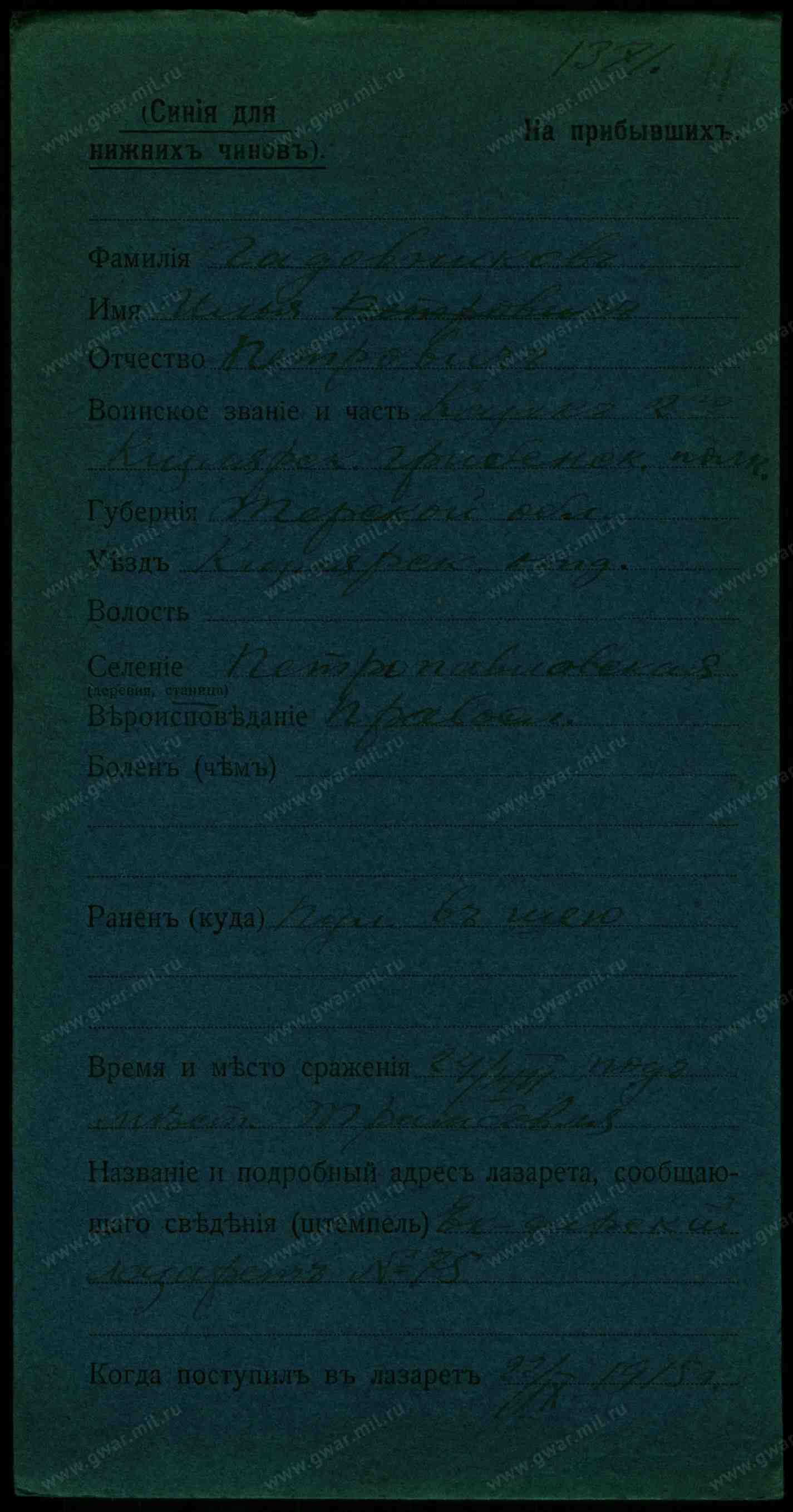 Красноармеец __.__.1917 г. Грозный, пер. Исрельский, 5 , Место службы: 62 А 156 оаб. Донесение о потерях