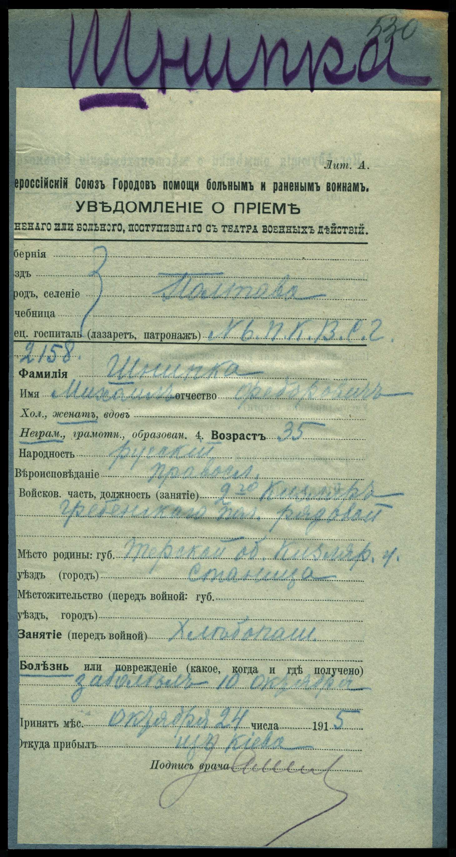 1. Шныпко Тимофей Наумов, хозяин, 70, каз., родился в слободе Ямполе Изюмского уезда Харьковской губ., православ., родной язык - малороссийский, неграм., основное занятие - земледелие, доп. - огородничество