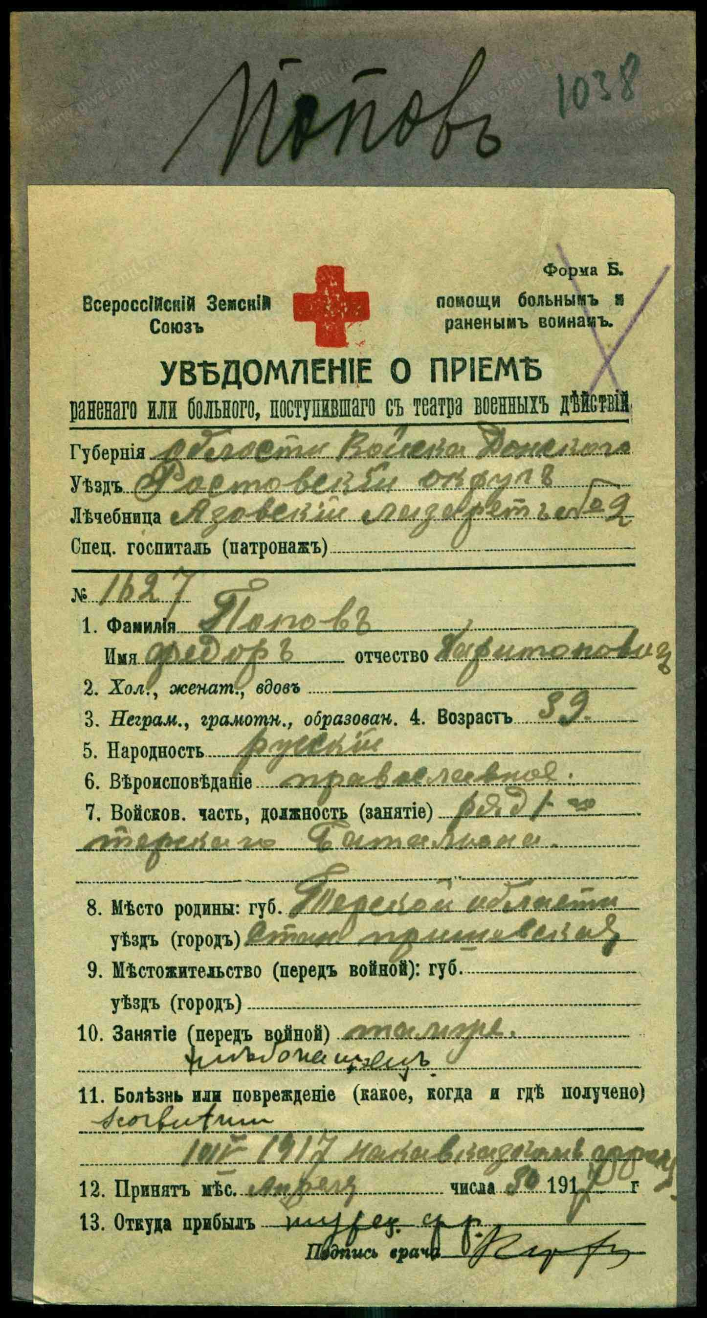 Фонд Картотека бюро учета потерь в Первой мировой войне (офицеров и солдат)