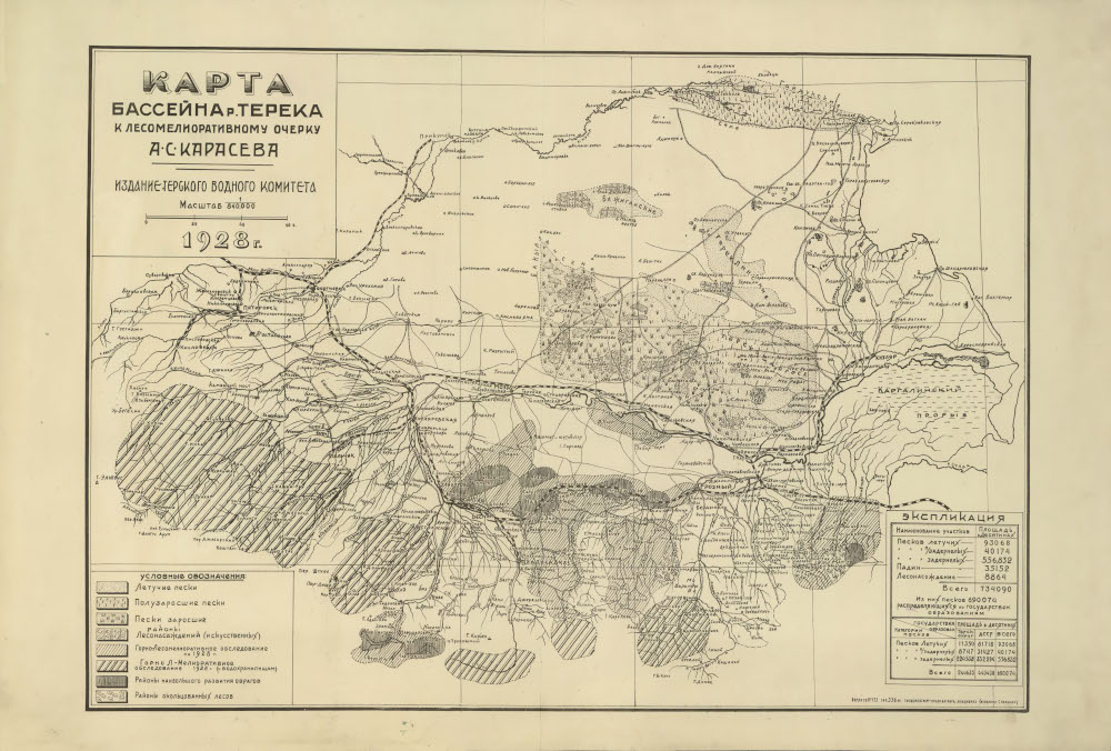 Карта бассейна Терека составлена к лесомелиоративному очерку А. С. Карасева.