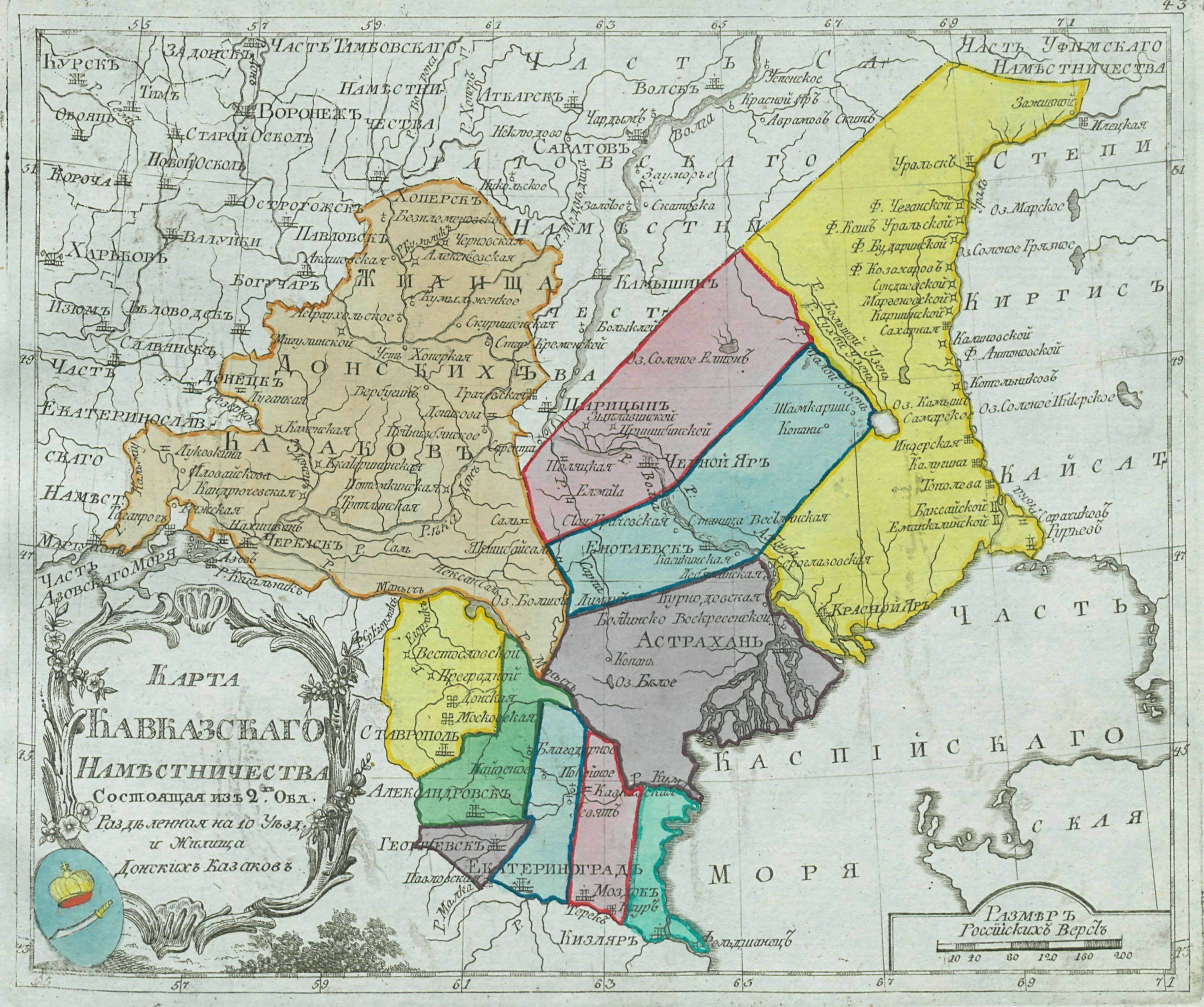Состоящая из девяти уездов, Астраханского, Красноярского, Енотаевского, Черноярского, Кизлярского, Моздокского, Георгиевского, Александровского и Ставропольского.