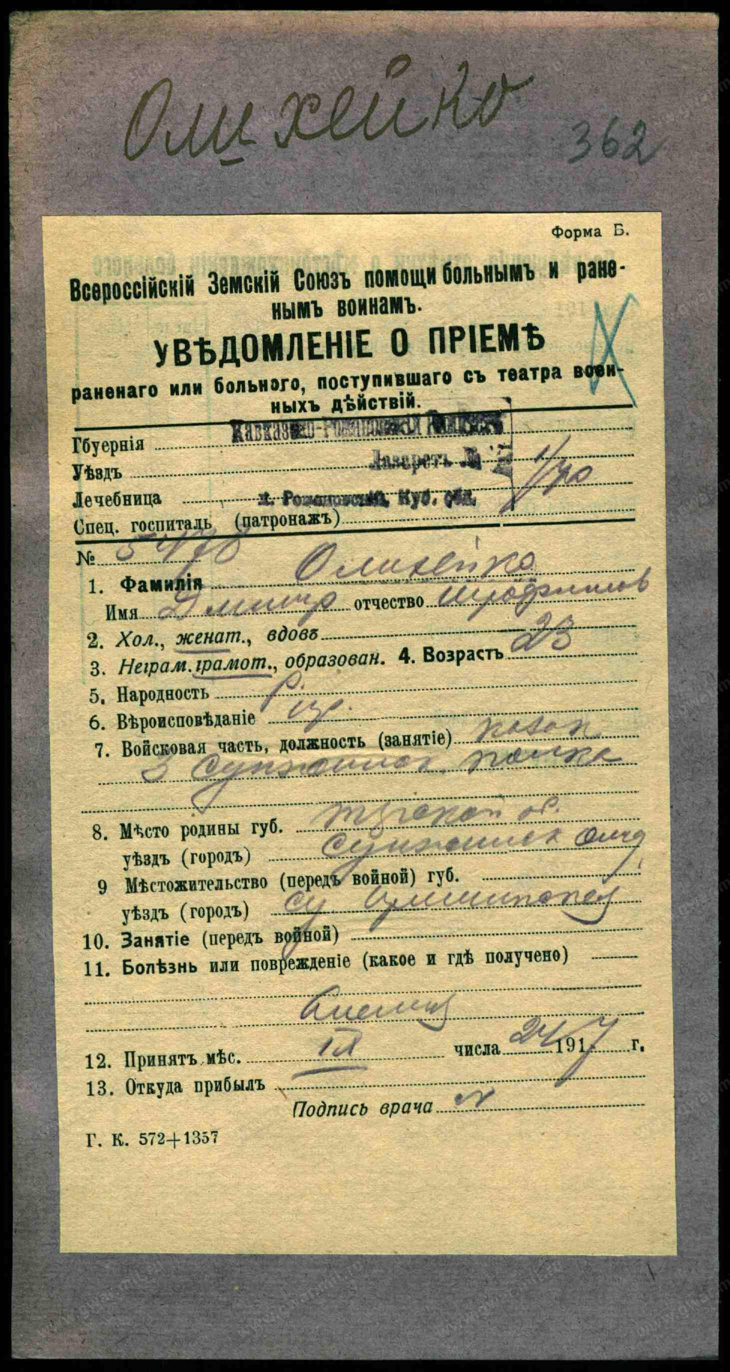 Фонд Картотека бюро учета потерь в Первой мировой войне (офицеров и солдат)
