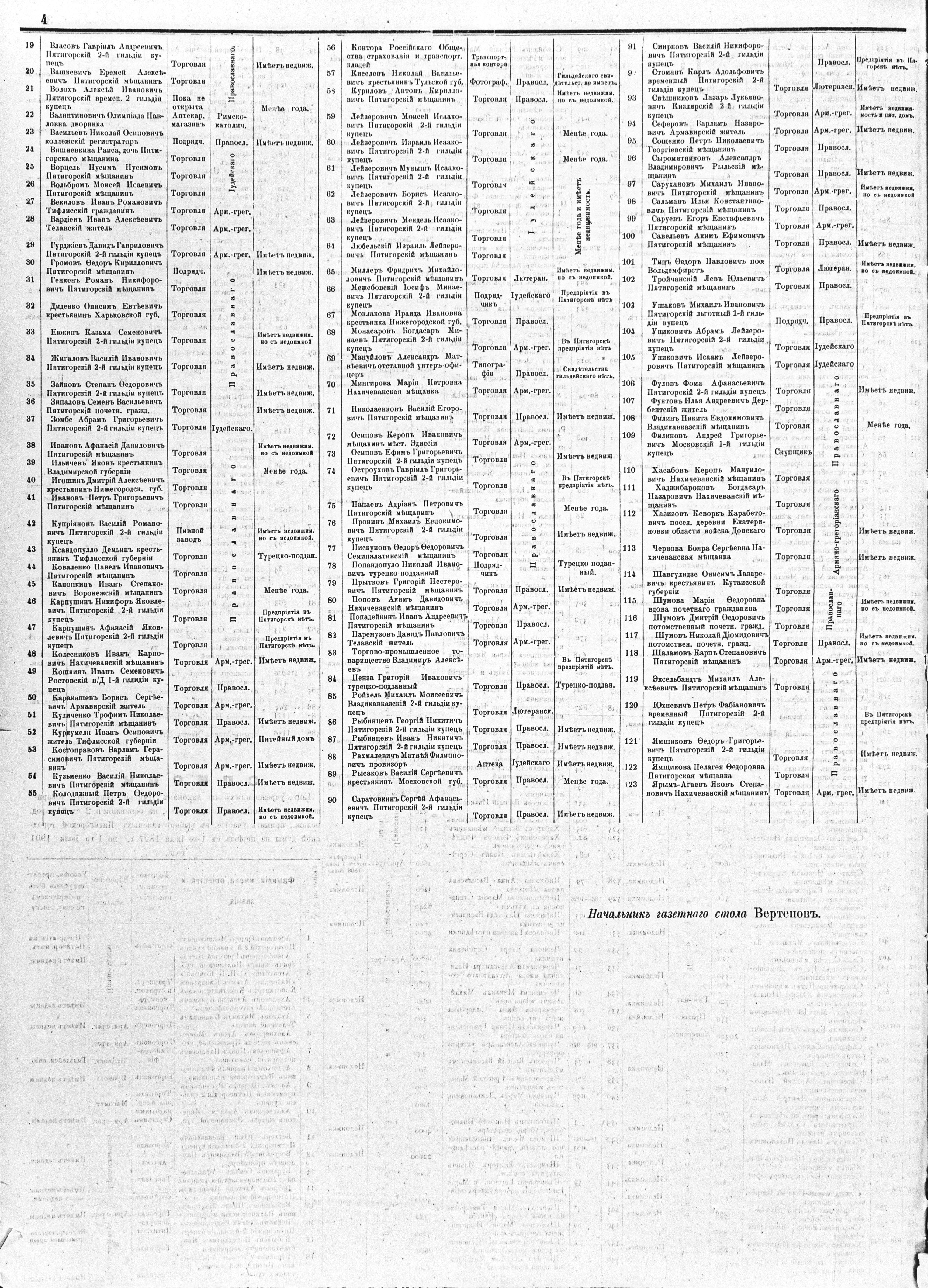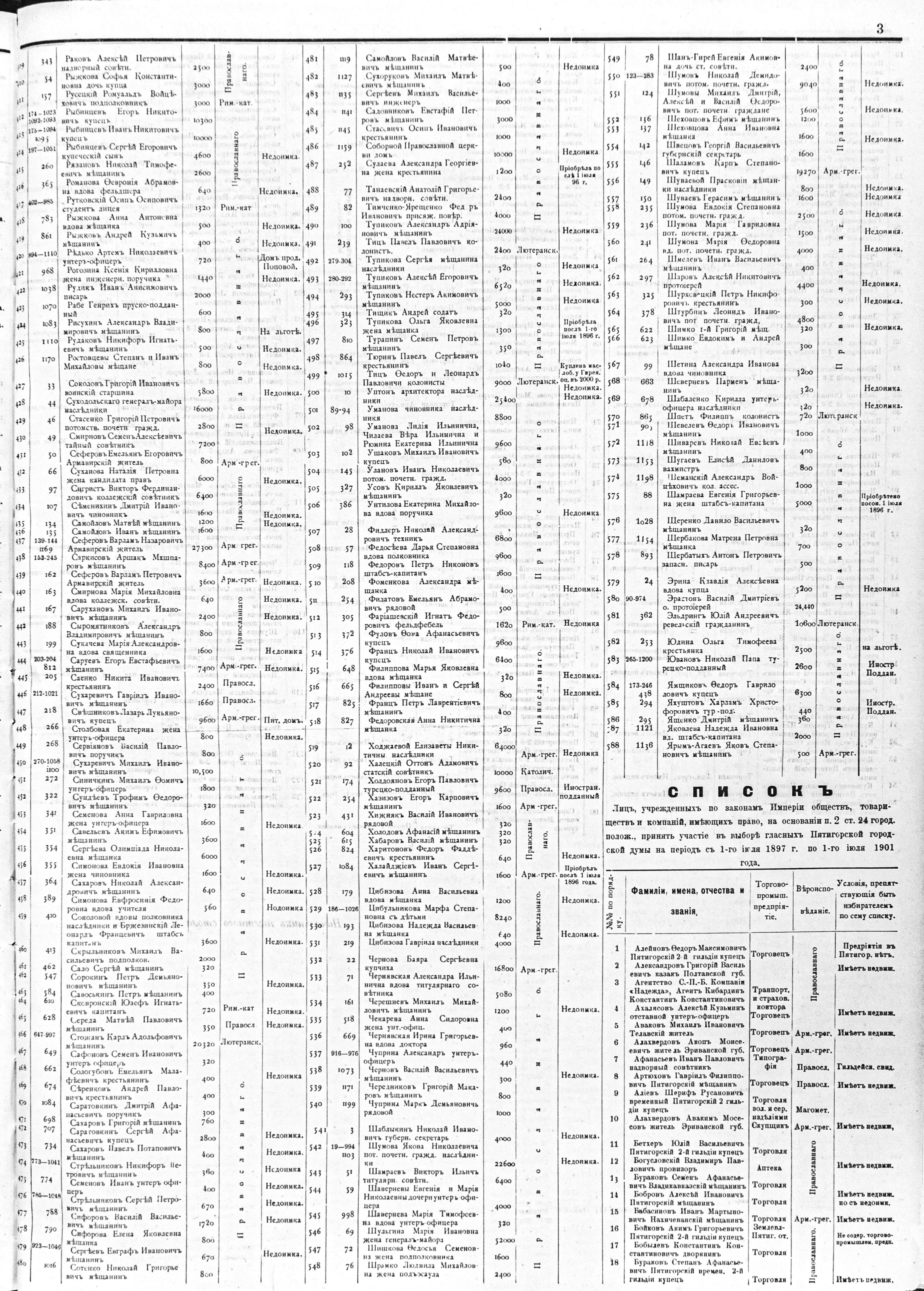 обывателямъ гор. Пятигорска, имѣющимъ право на основаніи 24, 32 и 33 ст. ст Высочайше утвержденнаго 11 іюня 1892 г. городового положенiя участія въ выборѣ гласныхъ Пятигорской думы на четырехлѣтіе съ 1-го іюля 1897 по 1-е іюля 1901 года.