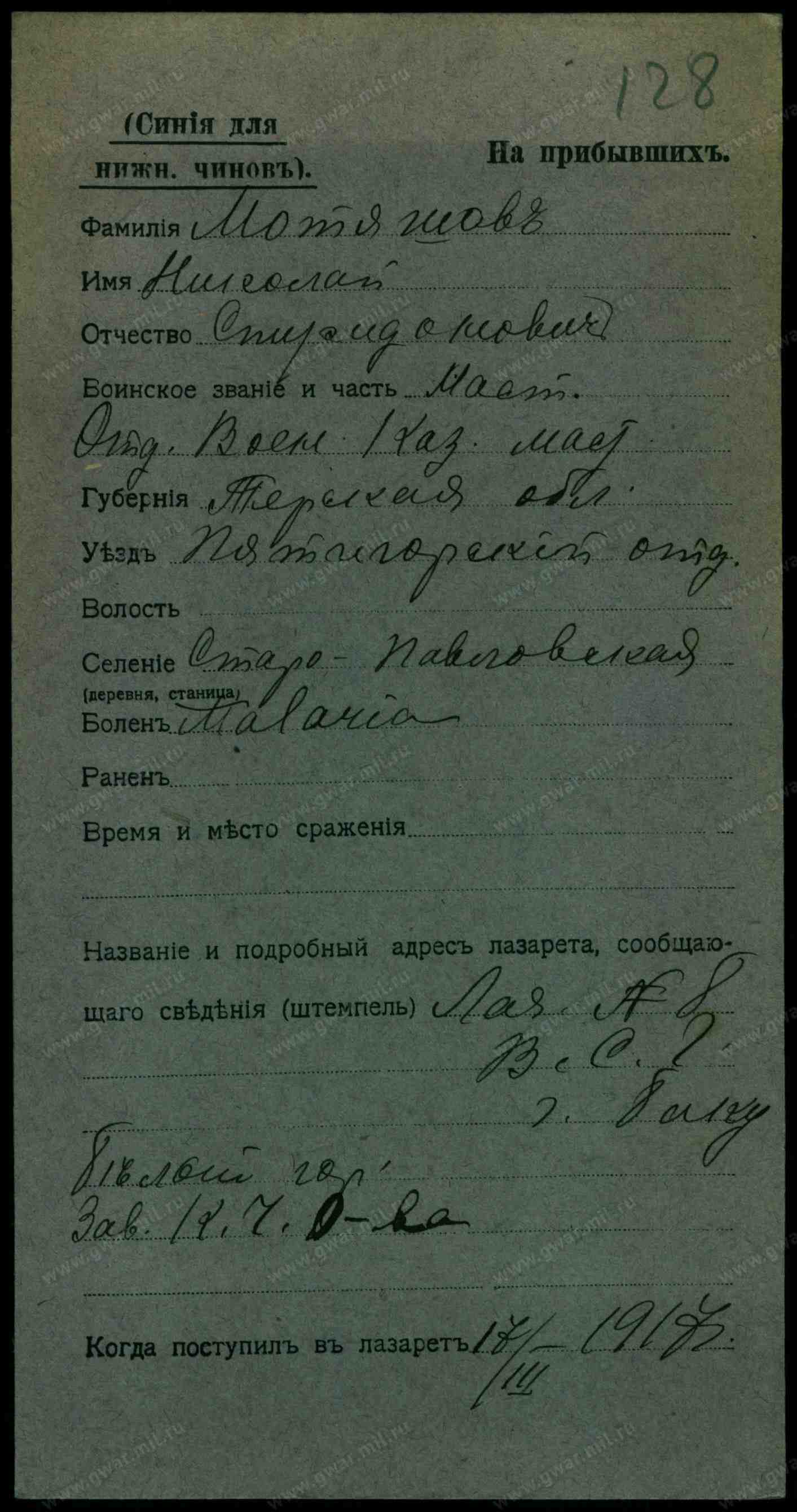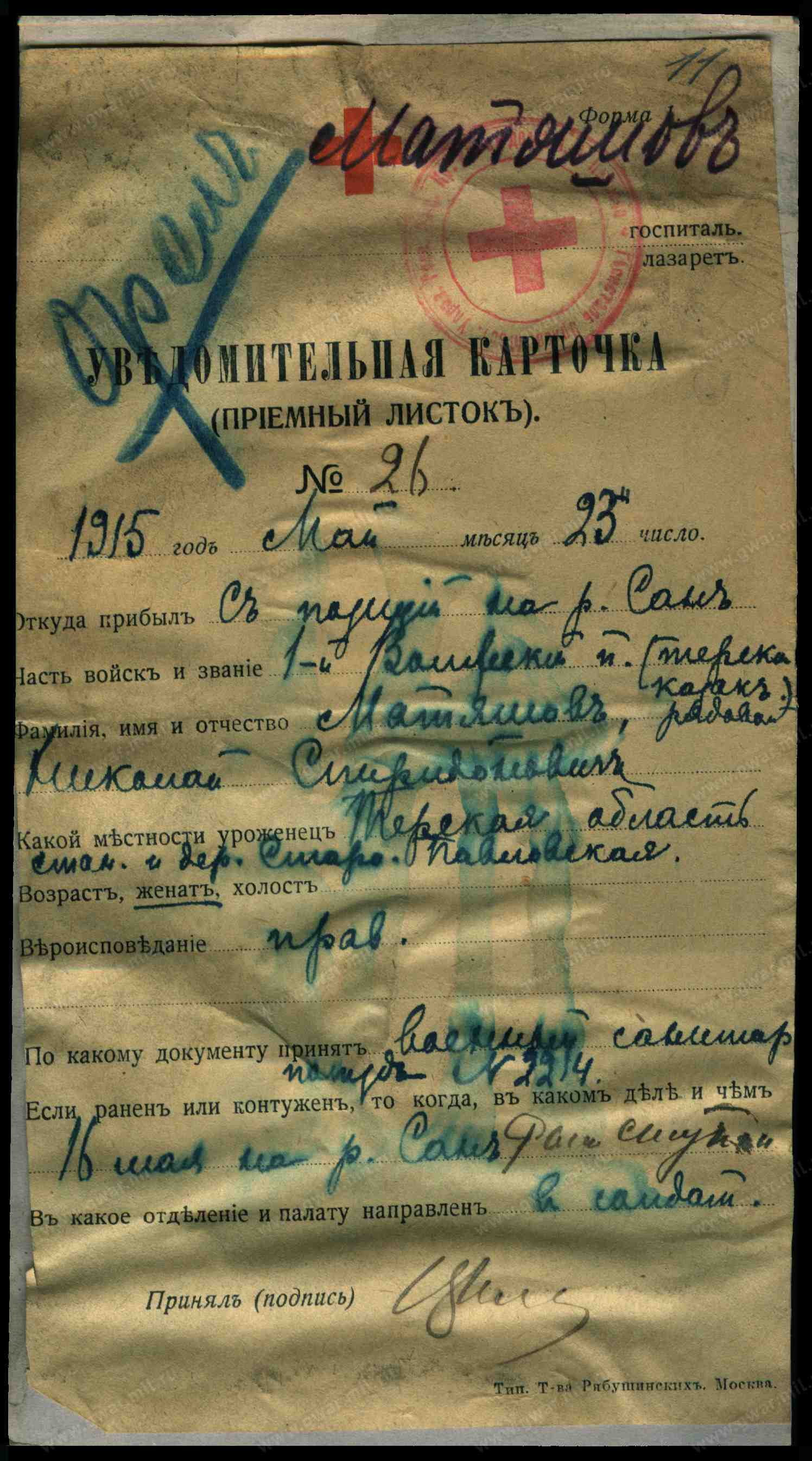Фонд Картотека бюро учета потерь в Первой мировой войне (офицеров и солдат)