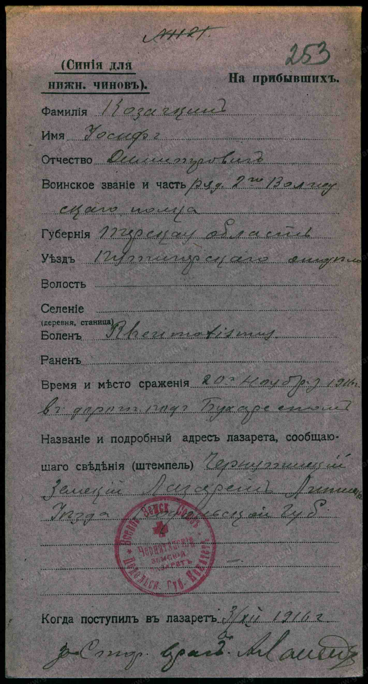 Фонд Картотека бюро учета потерь в Первой мировой войне (офицеров и солдат)