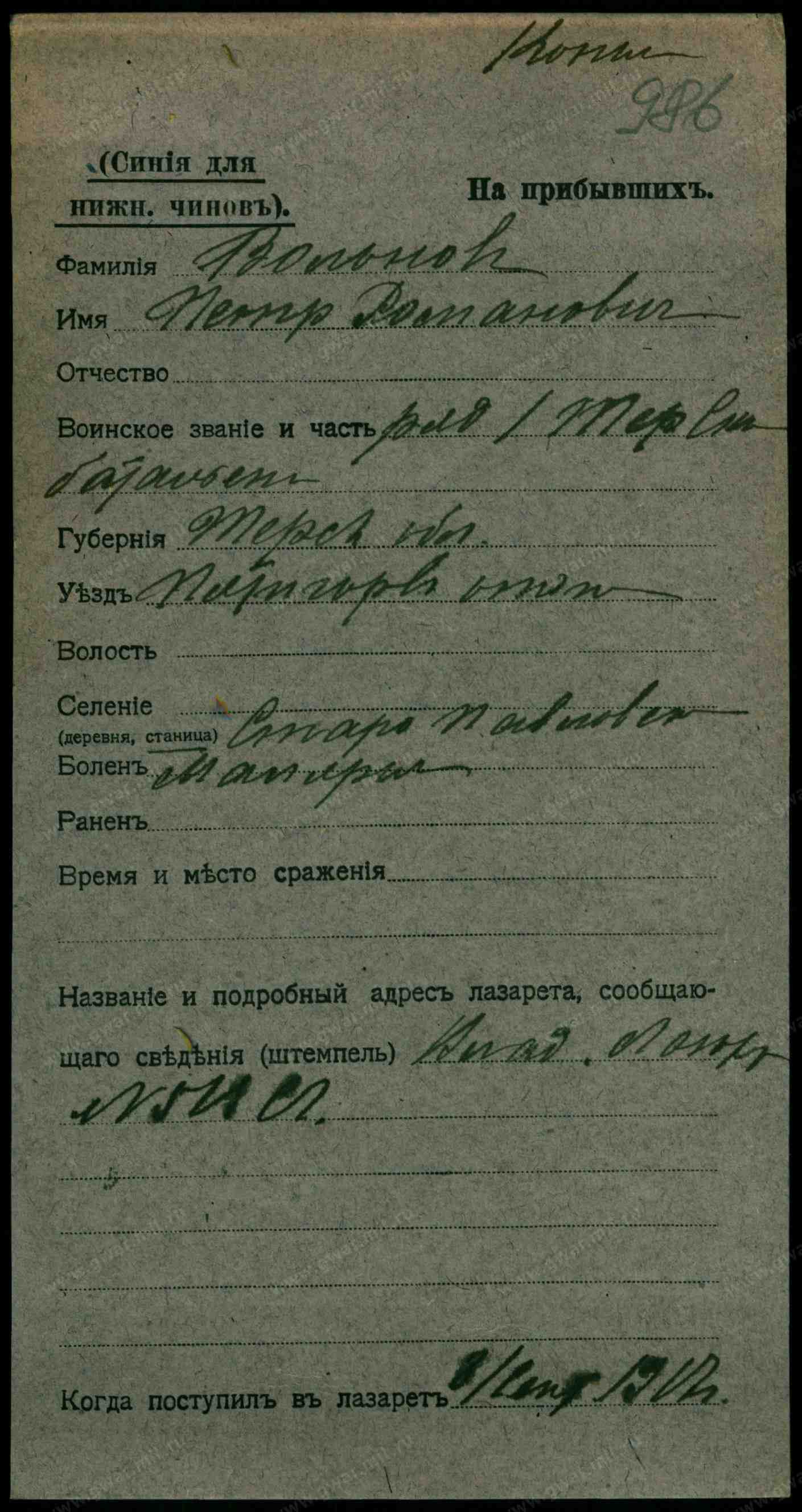 Фонд Картотека бюро учета потерь в Первой мировой войне (офицеров и солдат)