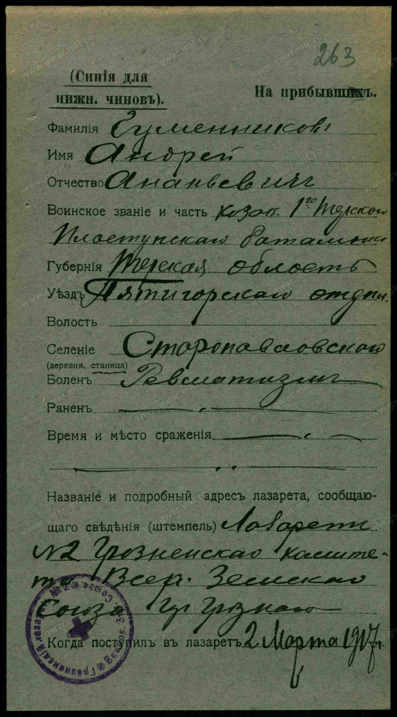 Воинская часть 1-й Волгский полк Терского казачьего войска