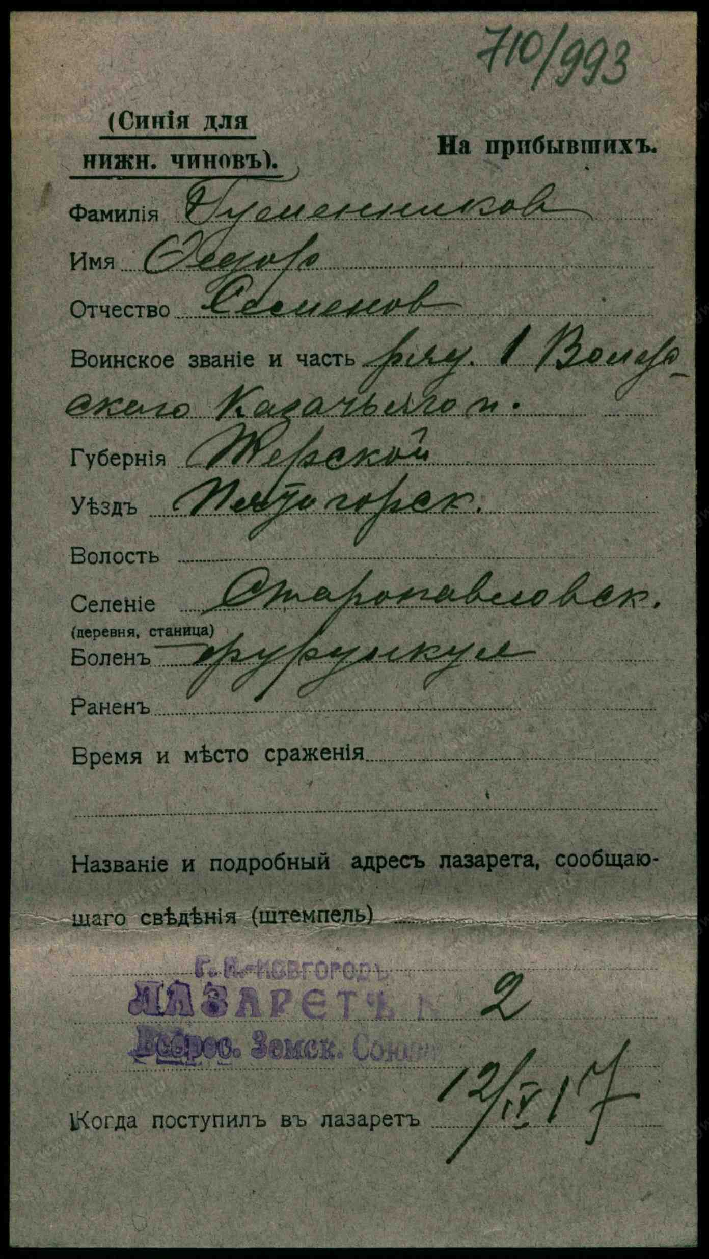Фонд Картотека бюро учета потерь в Первой мировой войне (офицеров и солдат)