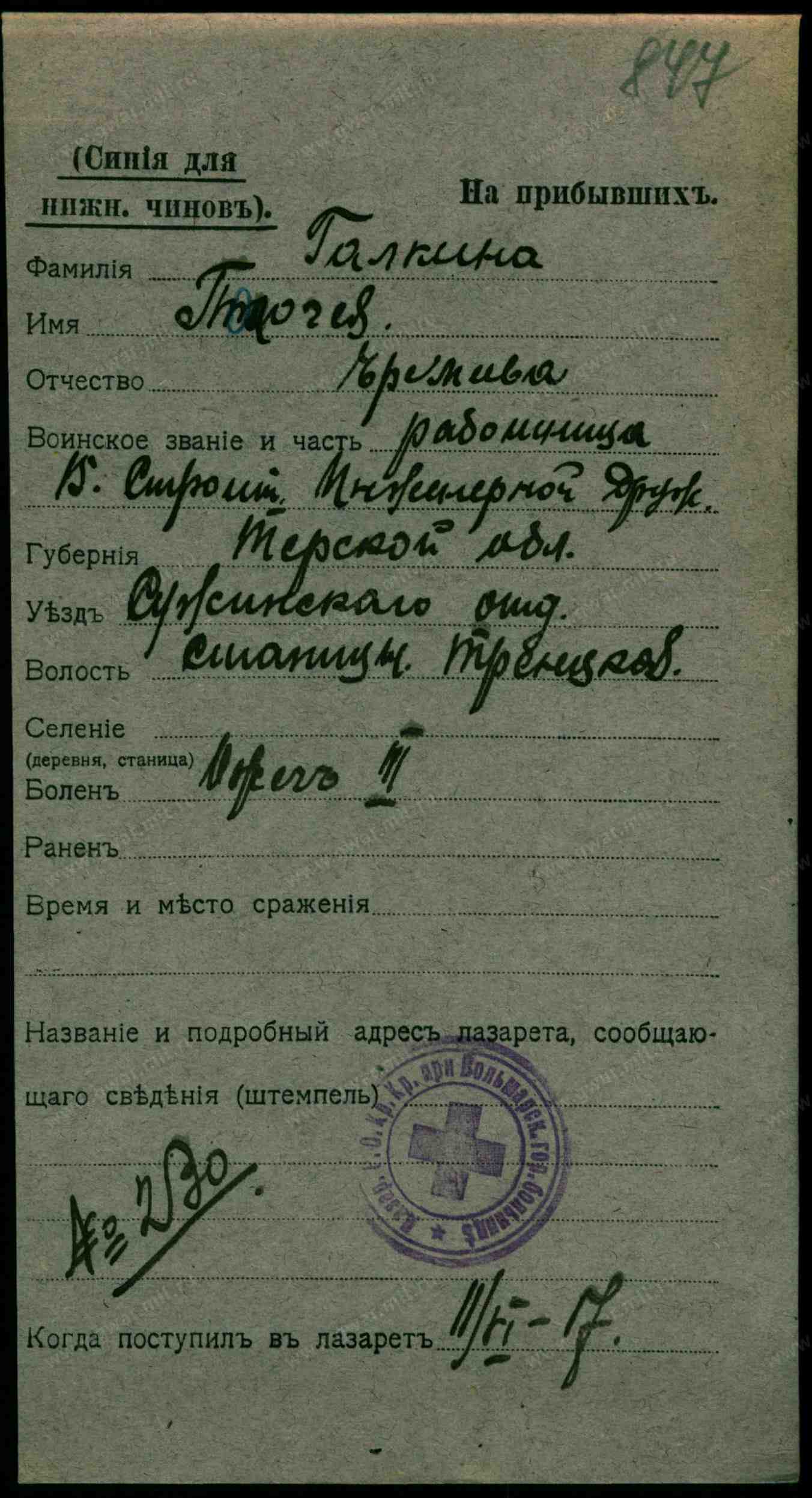 Место рождения Терская обл., Сунженский отдел, стнц. Троицкая