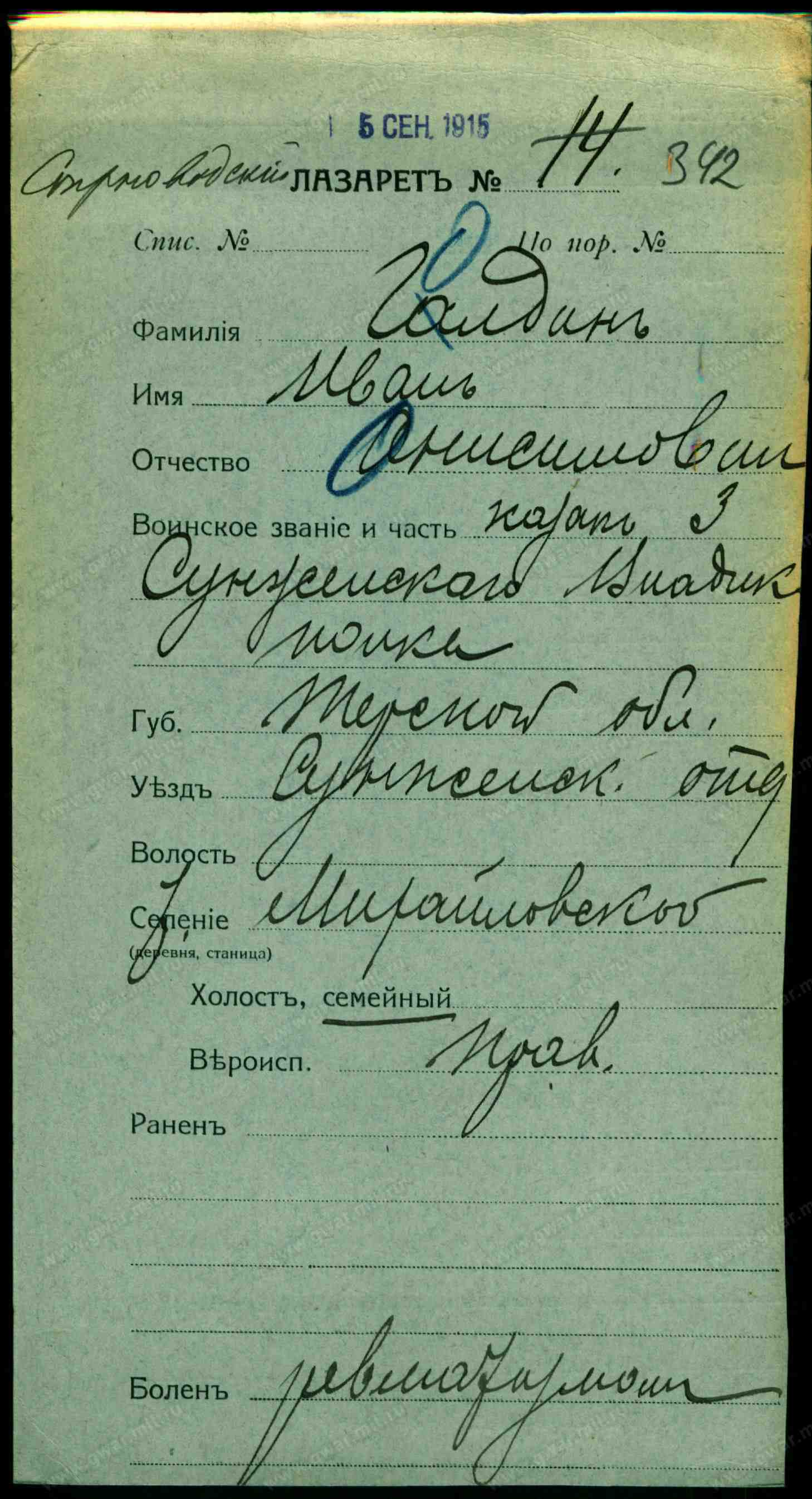 Вы здесь » Терские казаки » Михайловская ( Серноводская ) » Род Галдиных