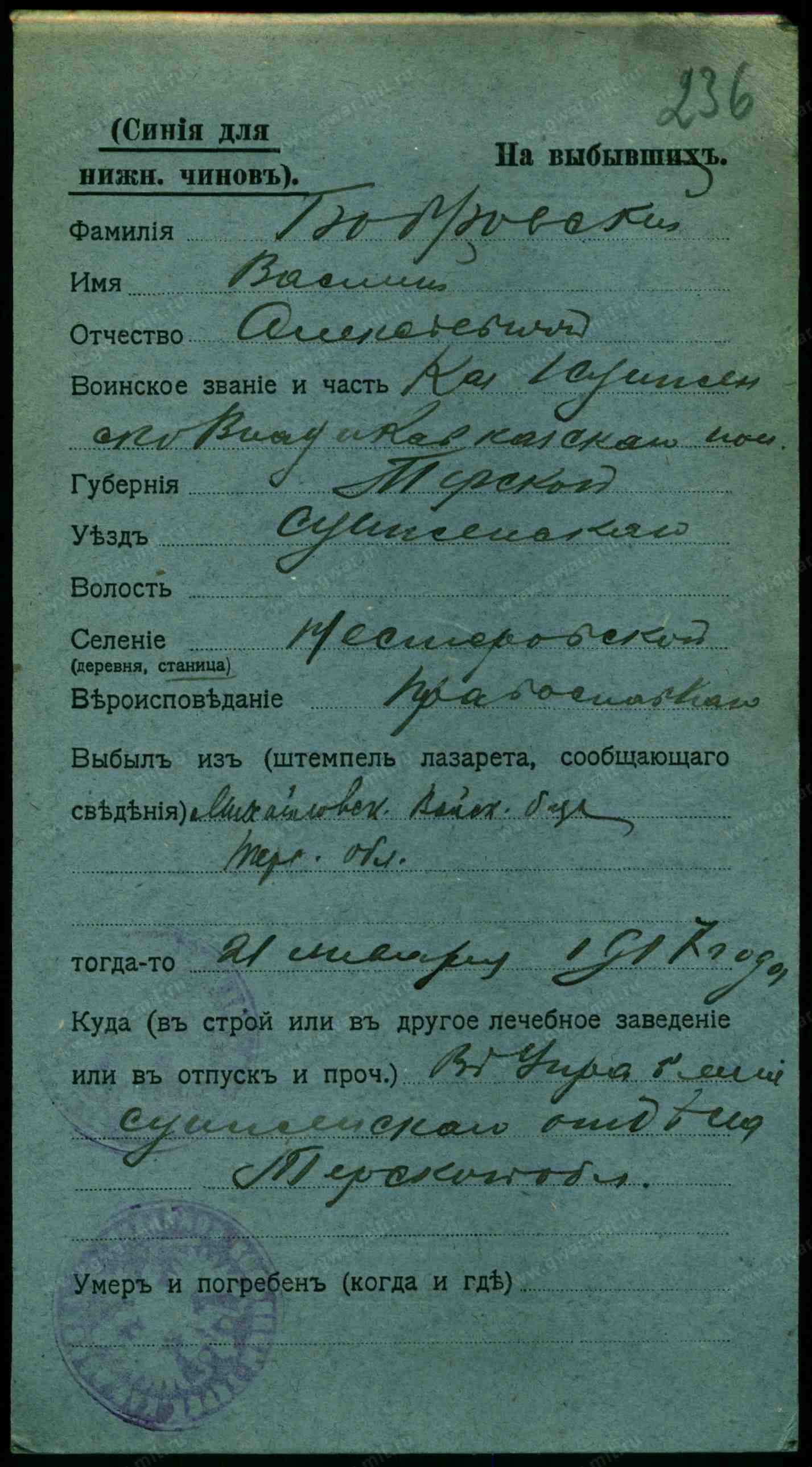 Тип документа Карточка на выбывших (нижние чины)