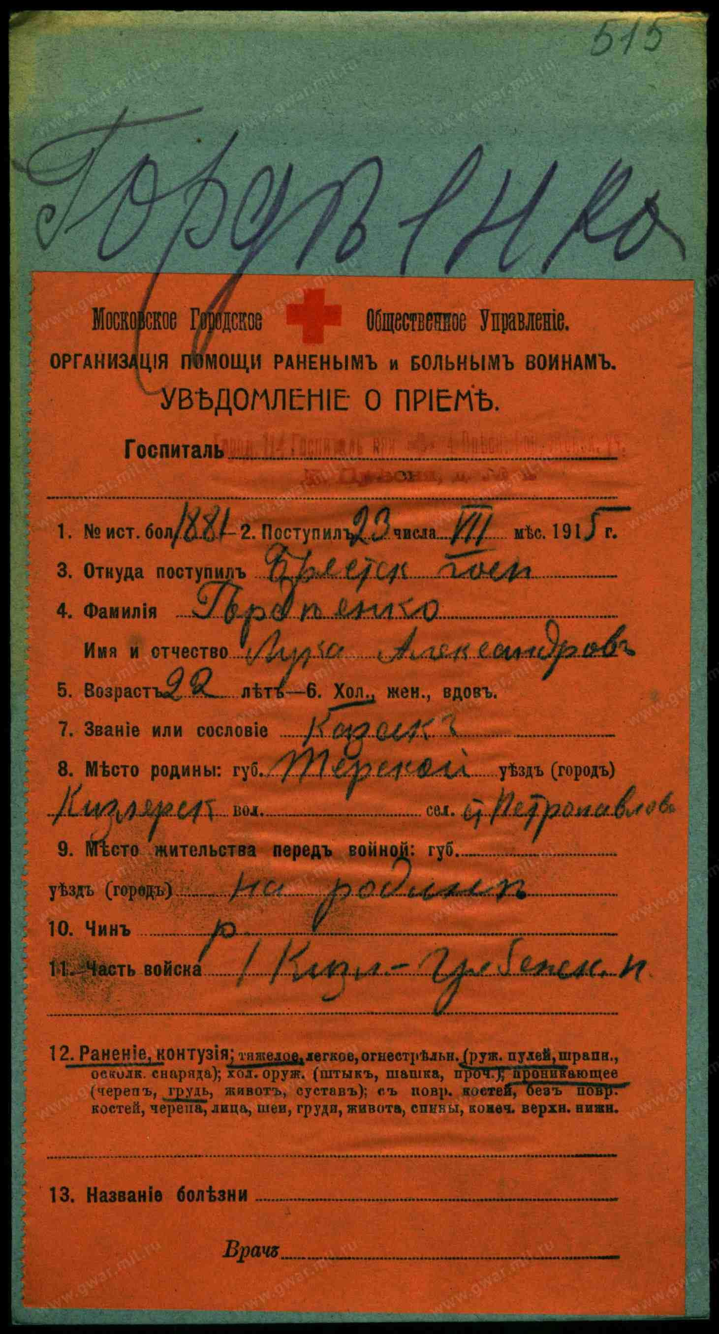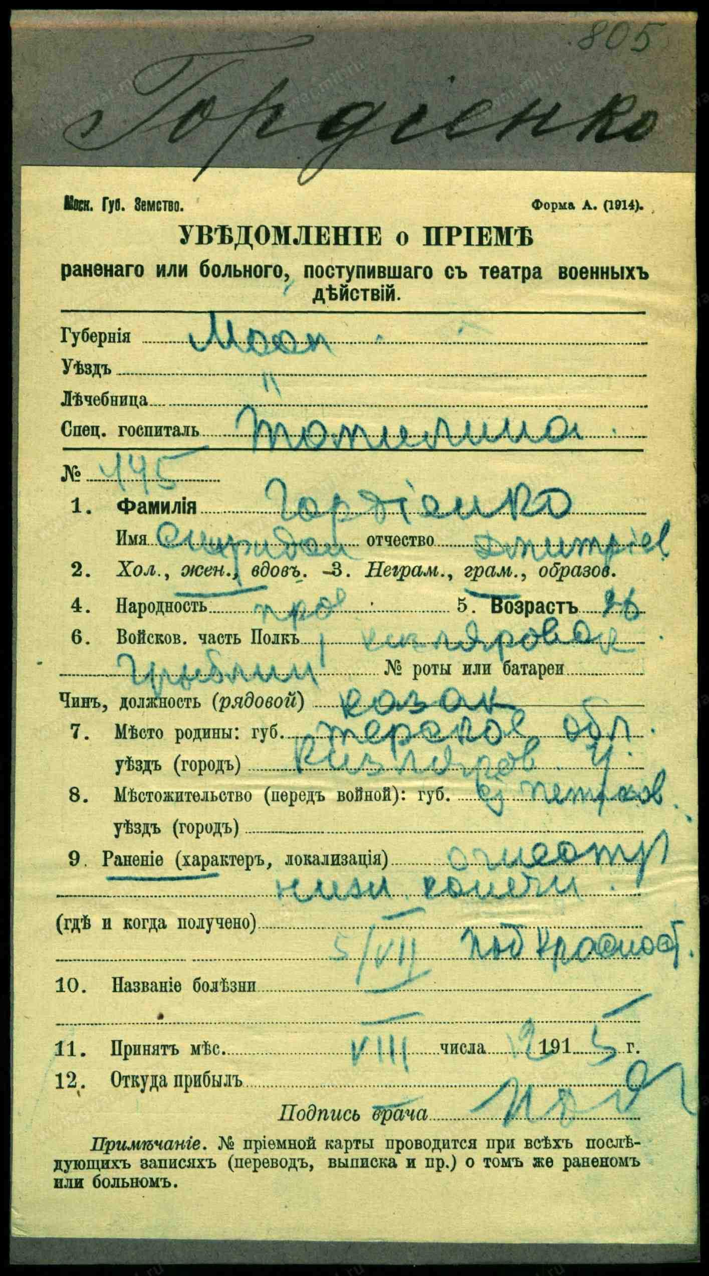 1. Гардиенко Ивлий Моисеевич, хозяин, 37 лет, казак, родился здесь, прав., родной язык русский, неграмотный, земледелец-хозяин, рабочий на нефтяных промыслах, терский зап. казак.