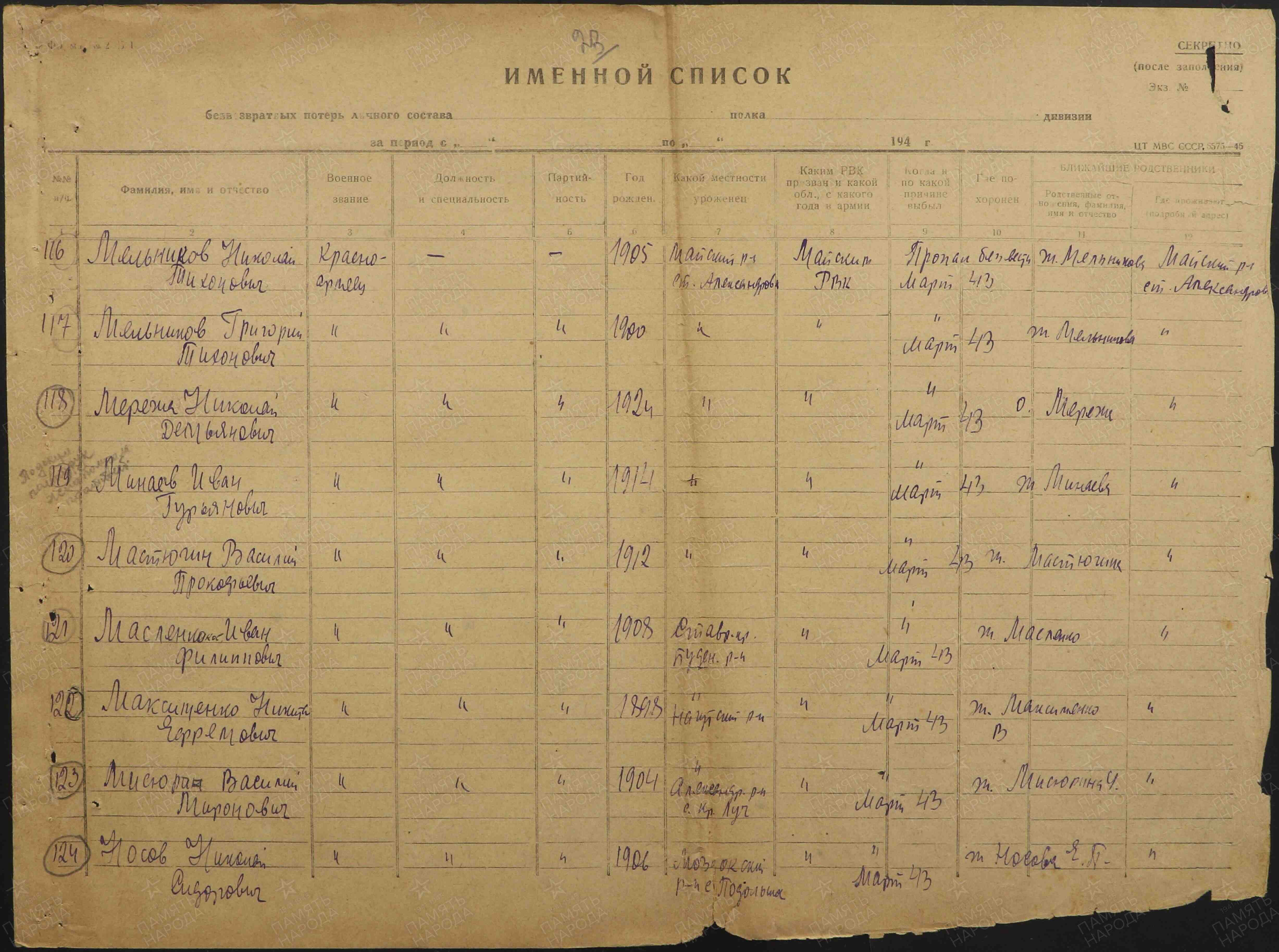 Дата рождения: 1878 г.