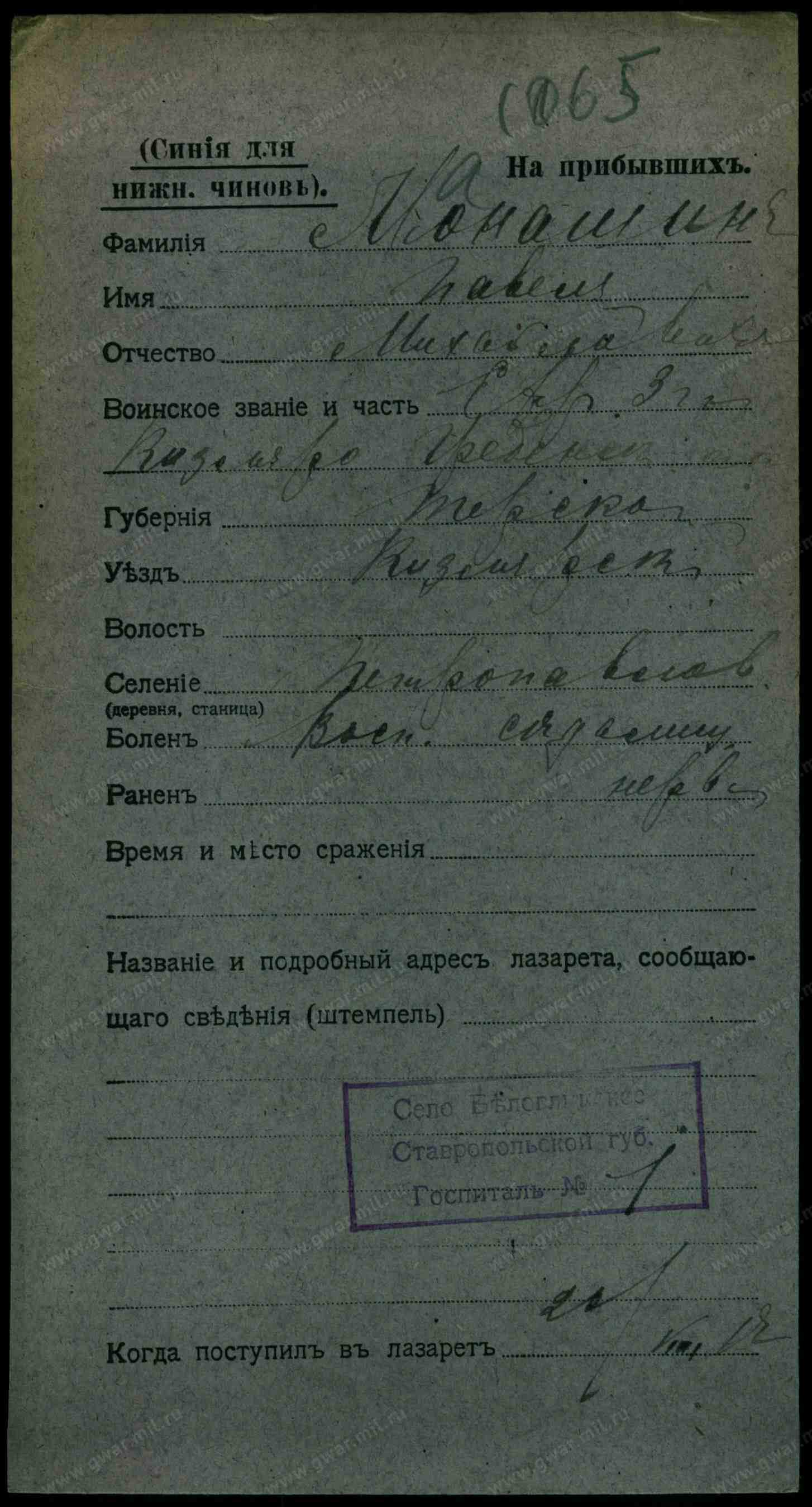 18.09.1941 , Госпиталь ЭГ 3245, Сталинградская обл., Михайловский р-н, г. Михайловка