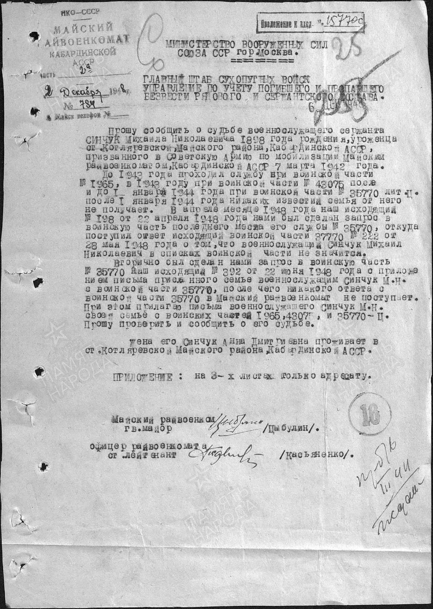 № 103. Павел Прокофьев сын Синчук- 48.
