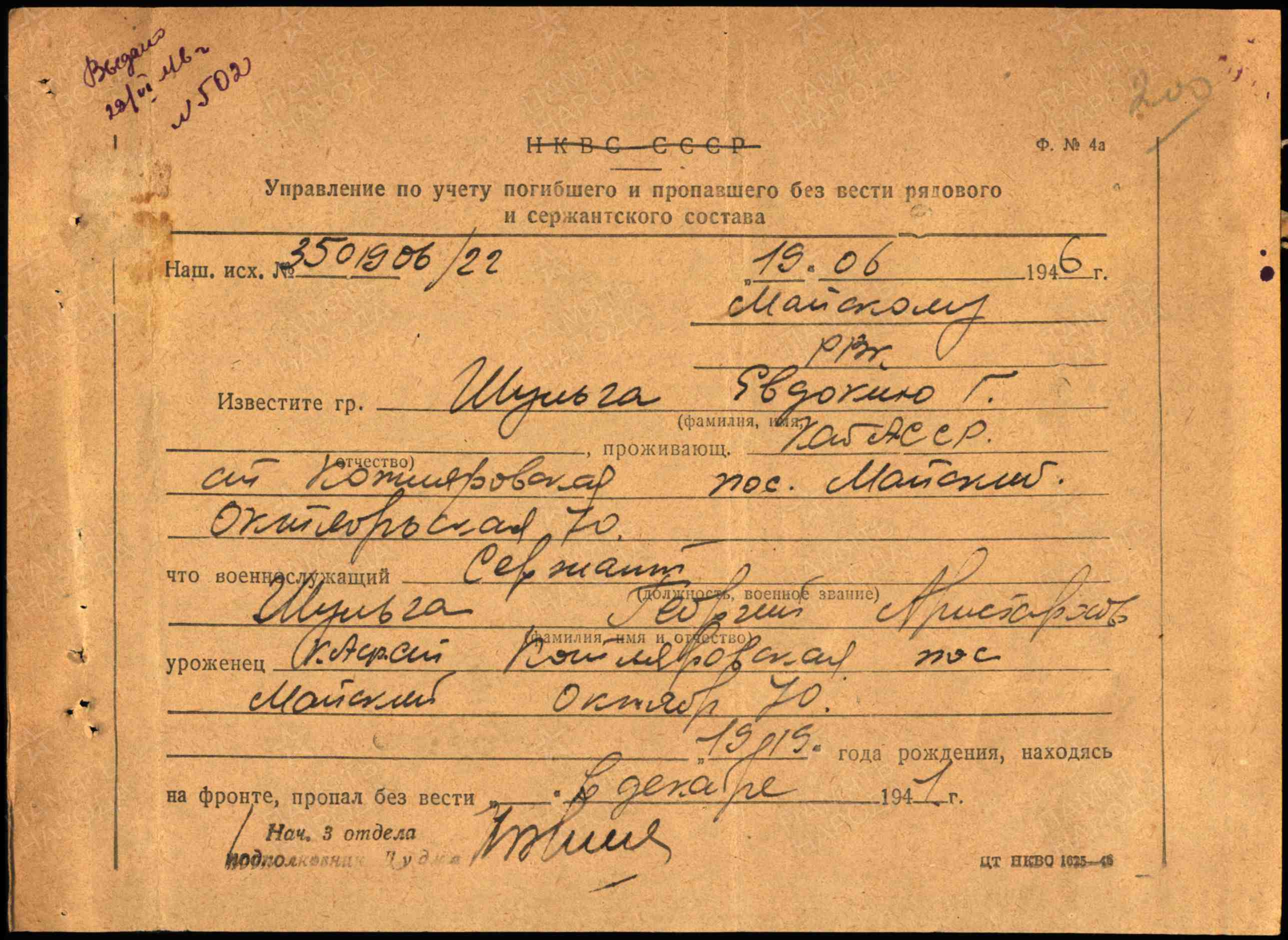 *** Скорее всего Шульга после женитьбы переехал из ст. Пришибской в ст. Котляревскую ***