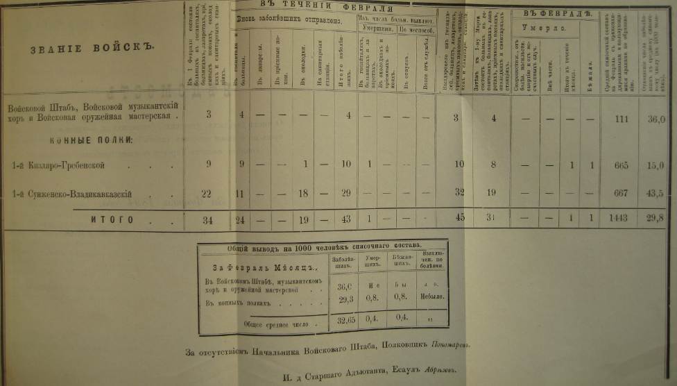 Офицеръ наблюдающій въ станицѣ за обученіемъ, вмѣстѣ съ тѣмъ завѣдуетъ карантинными постами, а потому не всегда имѣетъ возможность принимать личное участіе въ занятіяхъ съ молодыми казаками. Бывшей до сего времени приставленнымъ къ этому дѣлу Подъесаулъ Букановскій заболѣлъ и теперь обязанности его возложены на завѣдывающаго обученіемъ въ сосѣдней ст. Курской Сотника Гапузова.