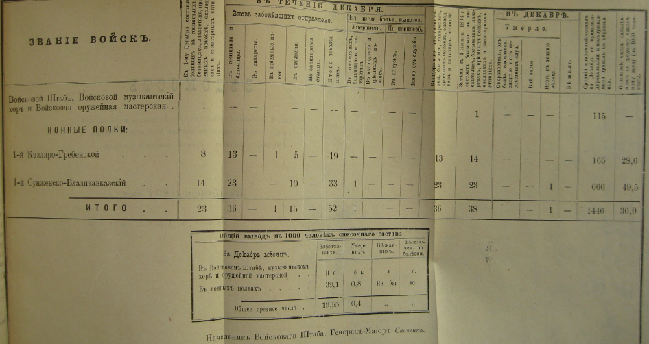 Не смотря на назначенное, согласно росписанію, на Декабрь для производства въ станицѣ занятій съ казаками приготовительнаго разряда съ 6-го по 12-е Декабря казаки оказались не собранными; по заявленію наблюдающаго въ станицѣ за обученіемъ офицера - Подъесаула Прокопова - занятія отложены на недѣлю, вслѣдствіе будто бы бывшей сильной грязи, при которой затруднительно производство занятій верховой ѣздою. (въ дѣйствительности въ теченіи почти всей недѣли стояли морозы), а также по просьбѣ станичниковъ, которымъ нужно было на той недѣлѣ заняться перевозкой лѣса. Но Управленію отдѣла о такомъ измѣненіи донесено не было.