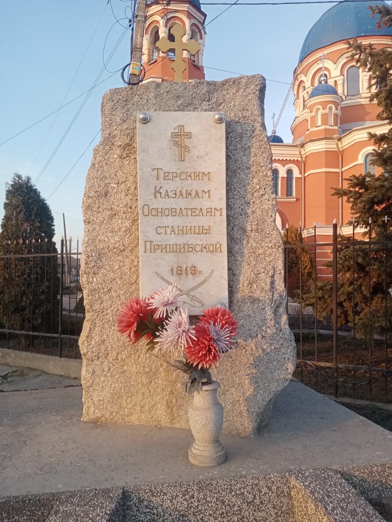 В 1849 году по решению станичного схода началось строительство храма в станице Пришибской. Здание храма деревянное на каменном фундаменте с такой же колокольней освящено 8 ноября 1850 во имя святого Архангела Михаила. К концу века при нем действовала церковноприходская школа. Затем Пришибская казачья община решила построить новую кирпичную церковь. Для этого казаки попросили у атамана Терского войска ссуду 14 тысяч рублей в рассрочку на 25 лет. Ссуду получили и церковь была построена. В 1909 году состоялись торжества по случаю освящения нового храма. Церковной общине выделили 330 десятин земли, которая по расчетам должна была приносить 600 рублей годового дохода. За счет этих средств и думали погасить ссуду. В сентябре 1939 года храм был закрыт. Жителям станицы удалось сохранить большую часть имущества храма, в том числе уникальный деревянный резной иконостас. Здание храма использовалось под зернохранилище. Во время Великой Отечественной войны, в 1943 году, здание храма было возвращено верующим. В 1973 году была произведена реконструкция храма, а в 1988 году - обновлена его роспись.