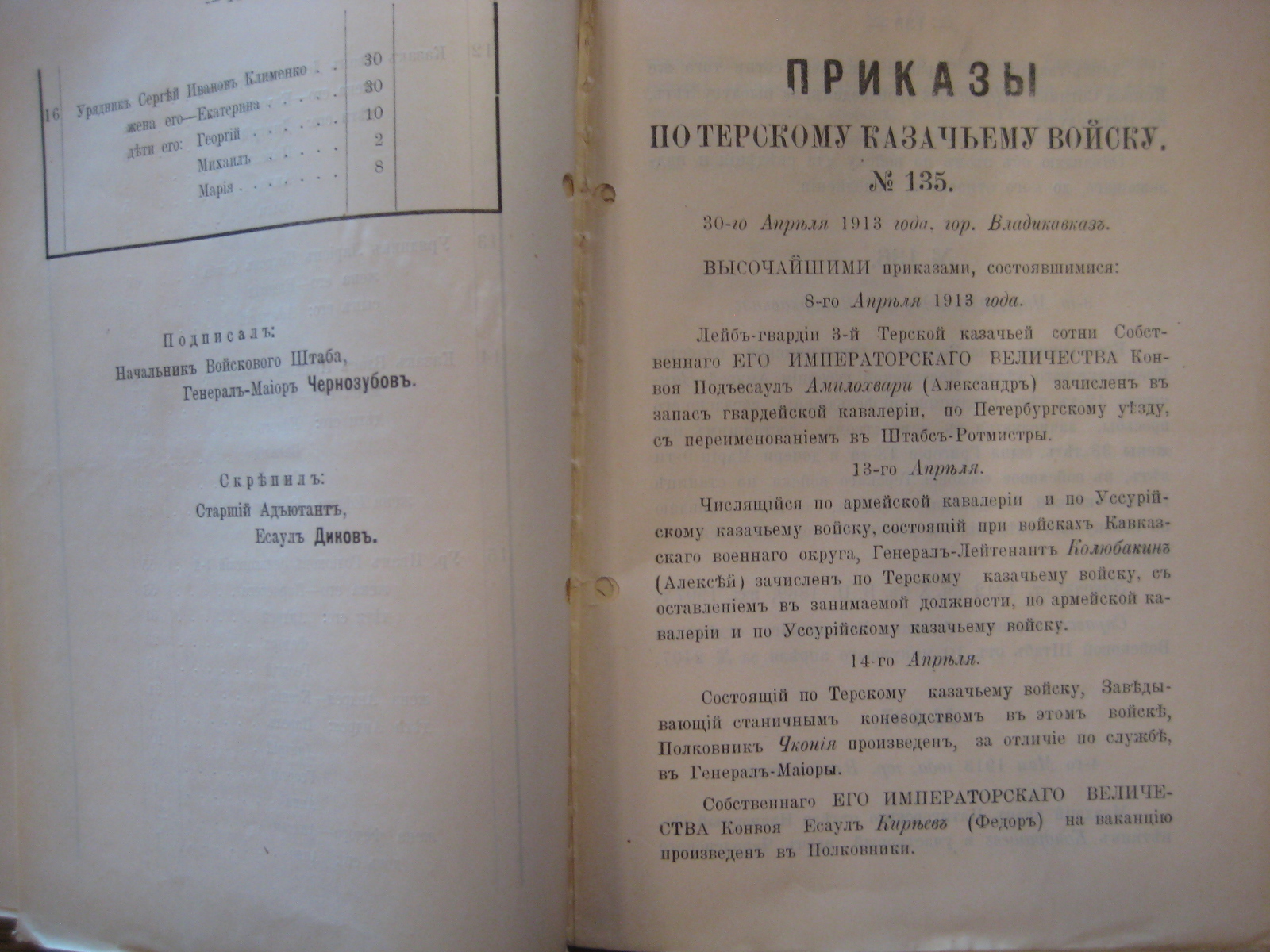 Чернуха Александр Степанов Терская обл. Солдатская ст. ПС урядников 1879