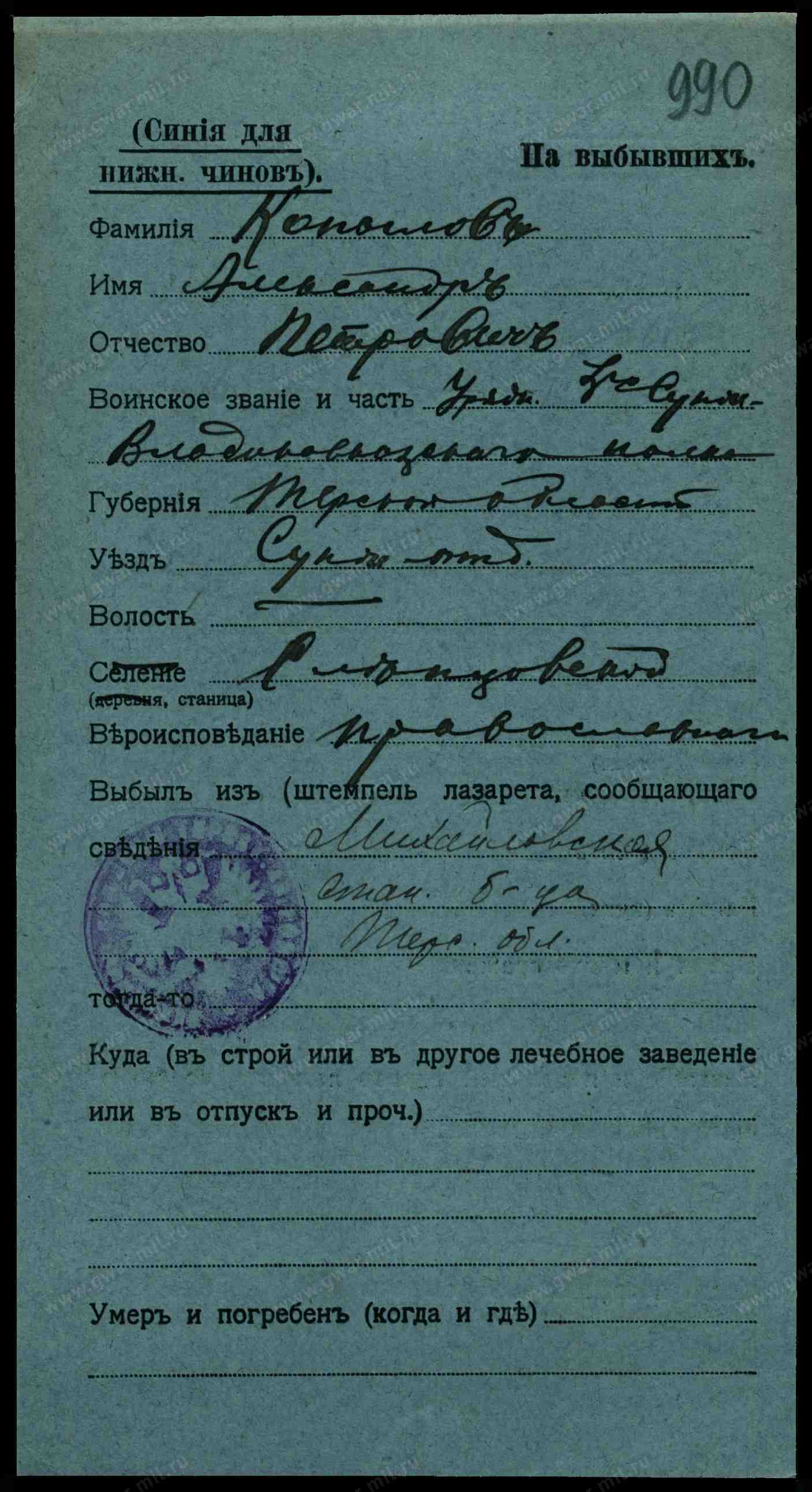 и Казакъ Фельдмаршальской станицы Терской области за Василій Васильевъ Головковъ.