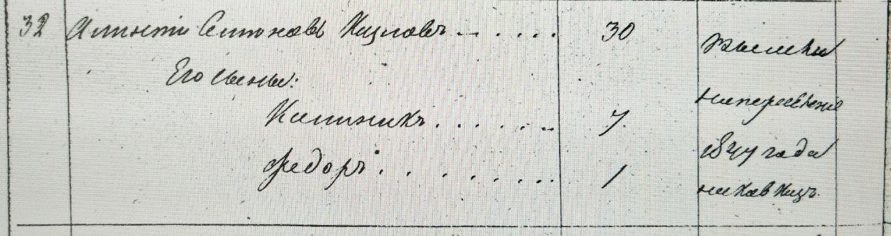 3. Козлов Иван Петров, сын, 13 лет, казак, родился здесь, правосл., родной язык русский, грамотный, в 1 клас. учил. М.Н.Пр., земледелие при родителях.