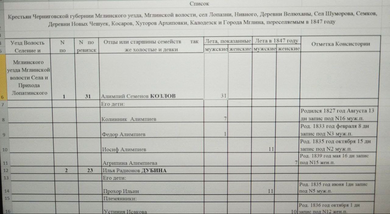 6. Козлов Иосиф Олимпиев, отец, 61 лет, вдовец, казак, родился в Черниговской губ., Имжинского? уезда. село Лопазное?, приписан здесь, правосл., родной язык русский, грамотный, в 1 клас. учил. М.Н.Пр., земледелие при сыне.