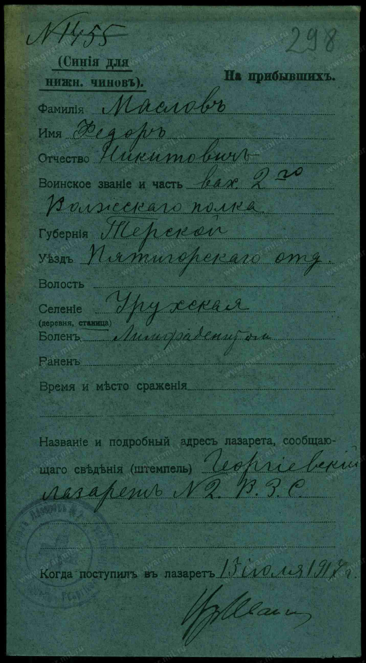 Фонд Картотека бюро учета потерь в Первой мировой войне (офицеров и солдат)