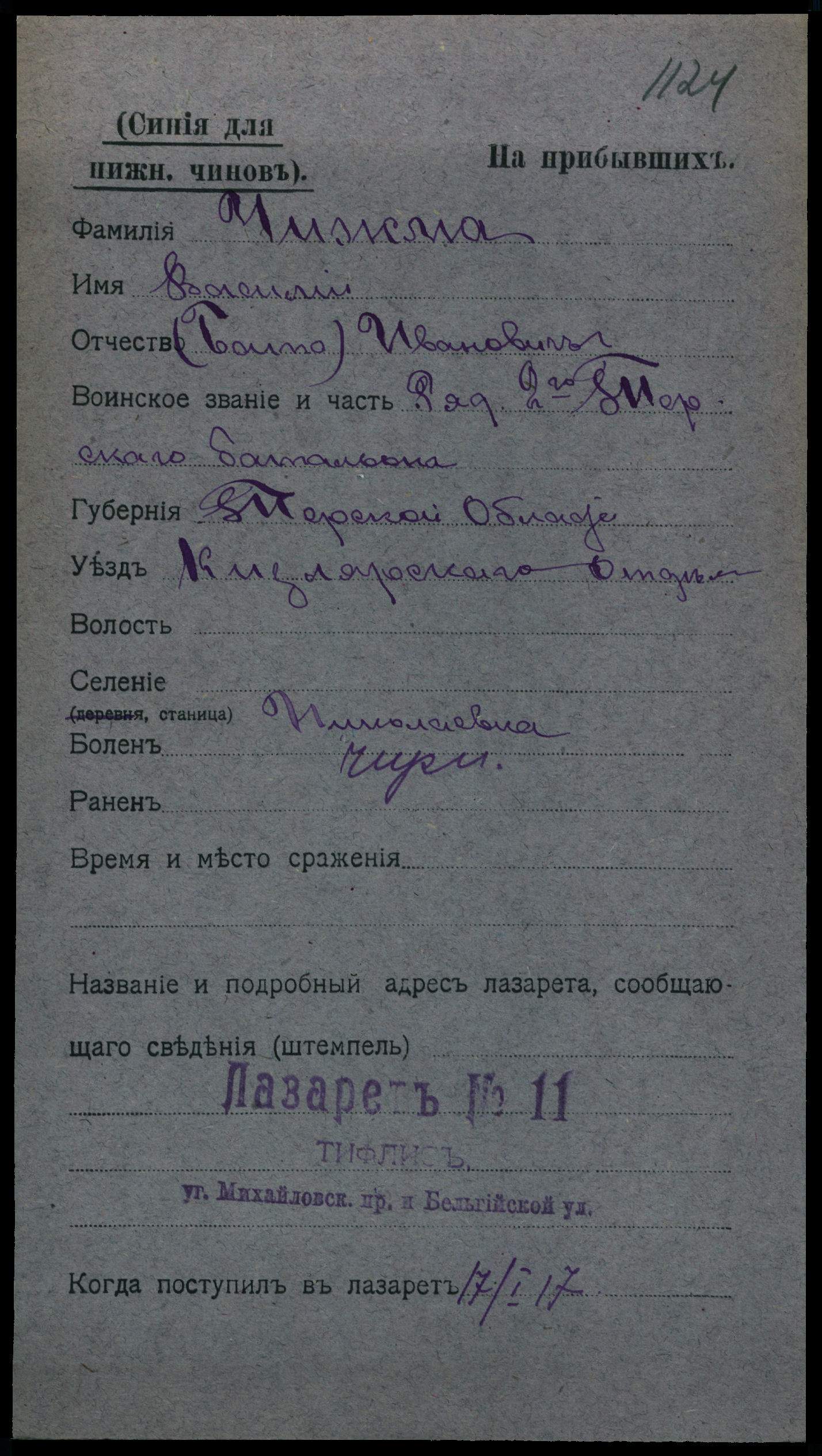 Лейтенант, __.__.1921 Орджоникидзевский край, Наурский р-н, станица Николаевская , Место службы: 7 погб 2 кд прима. Картотека
