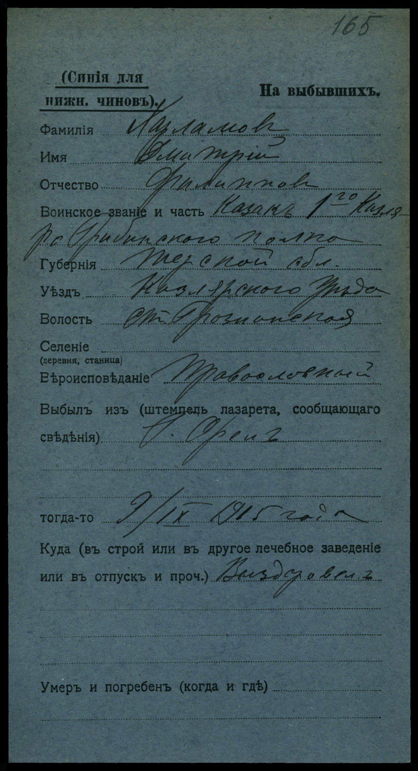 Мл. лейтенант, __.__.1925 Грозненская обл., г. Грозный. Картотека ранений