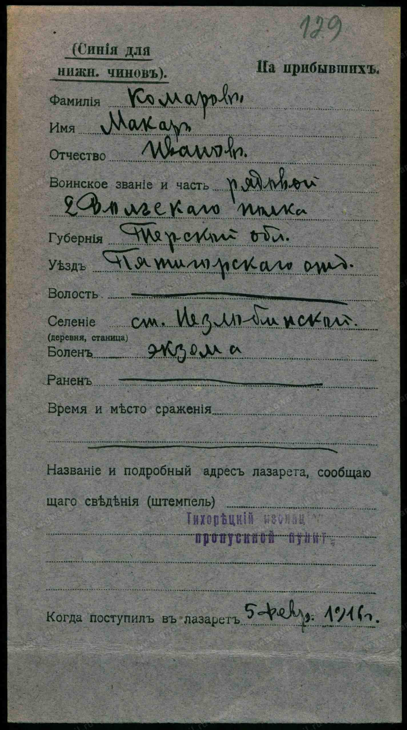 Фонд Картотека бюро учета потерь в Первой мировой войне (офицеров и солдат)