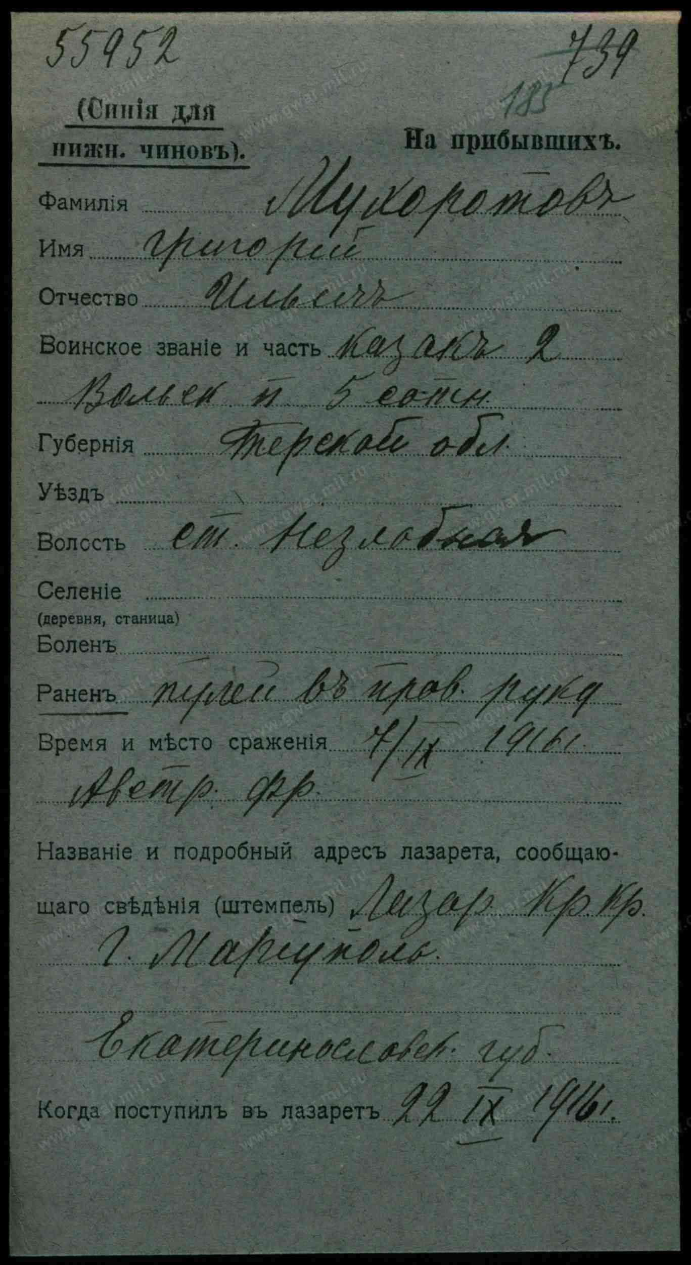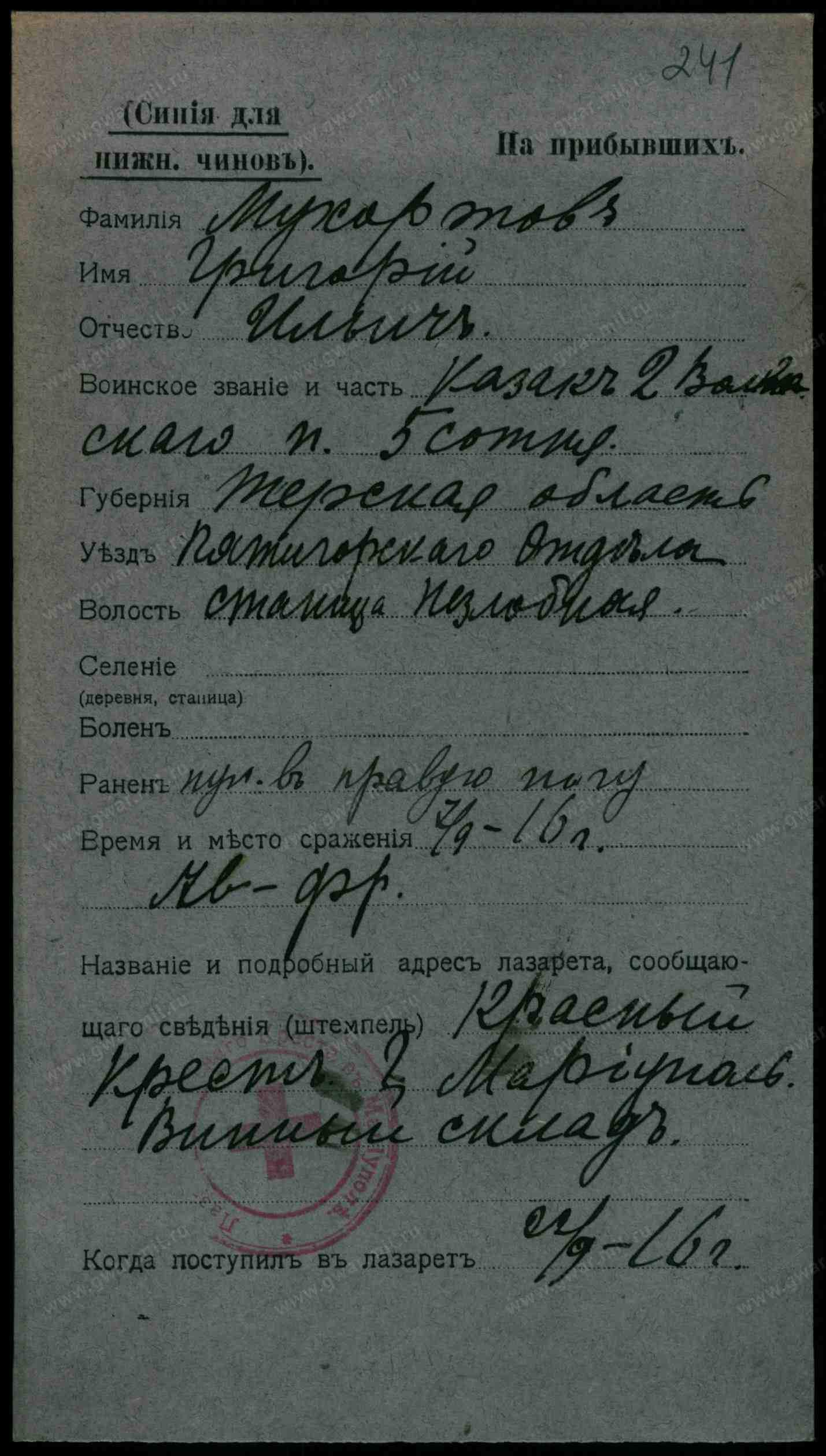 Место рождения Терская обл., Пятигорский отдел, Незлобная станица