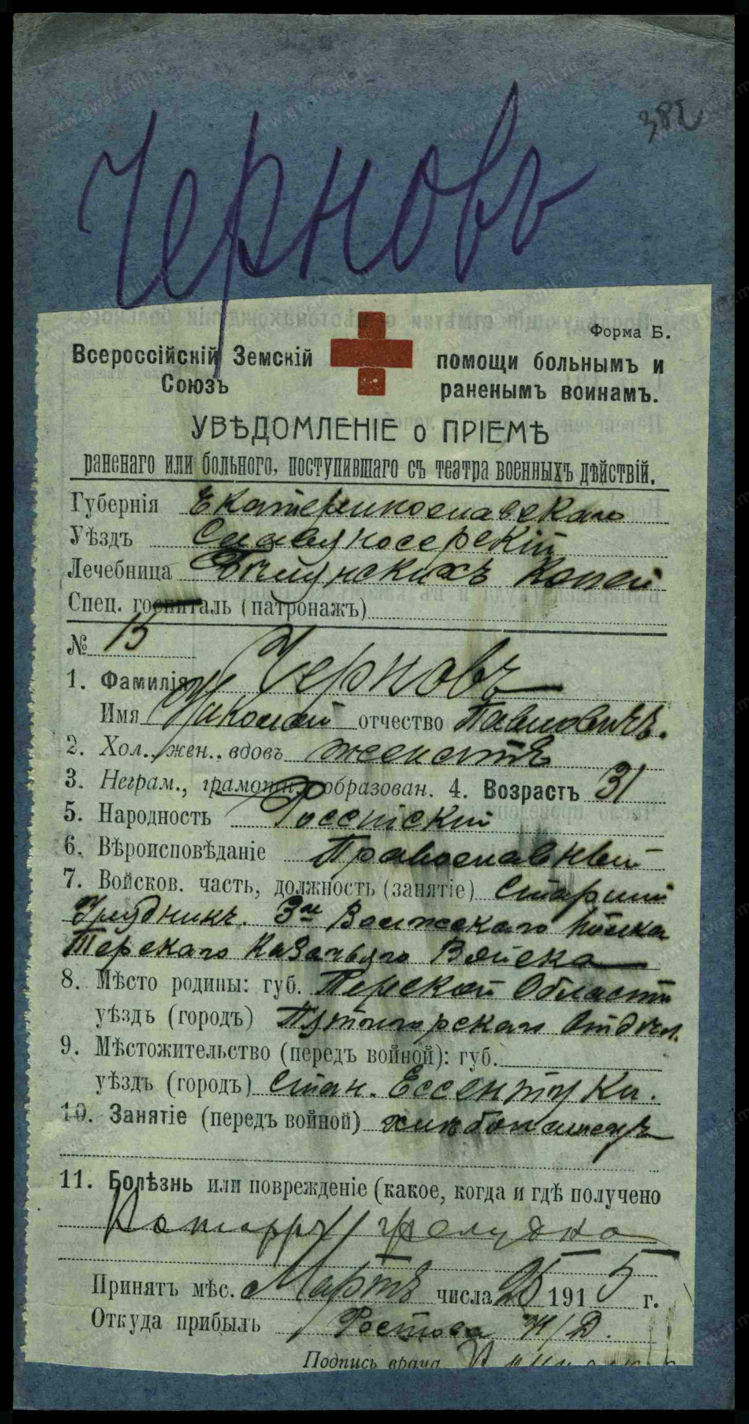 Мать: Чернова Ефимия г. Ессентуки