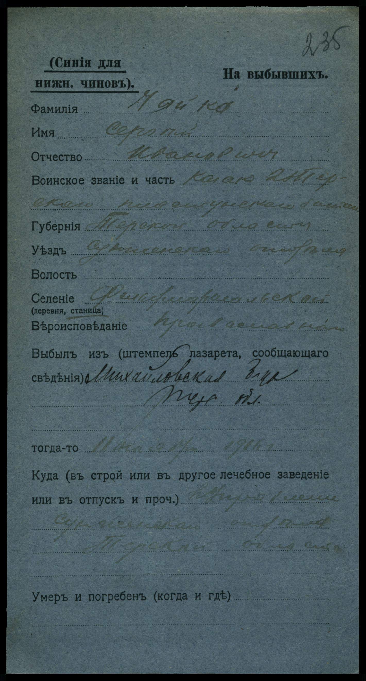псаломщическое место при церкви ст. Фельдмаршальской,