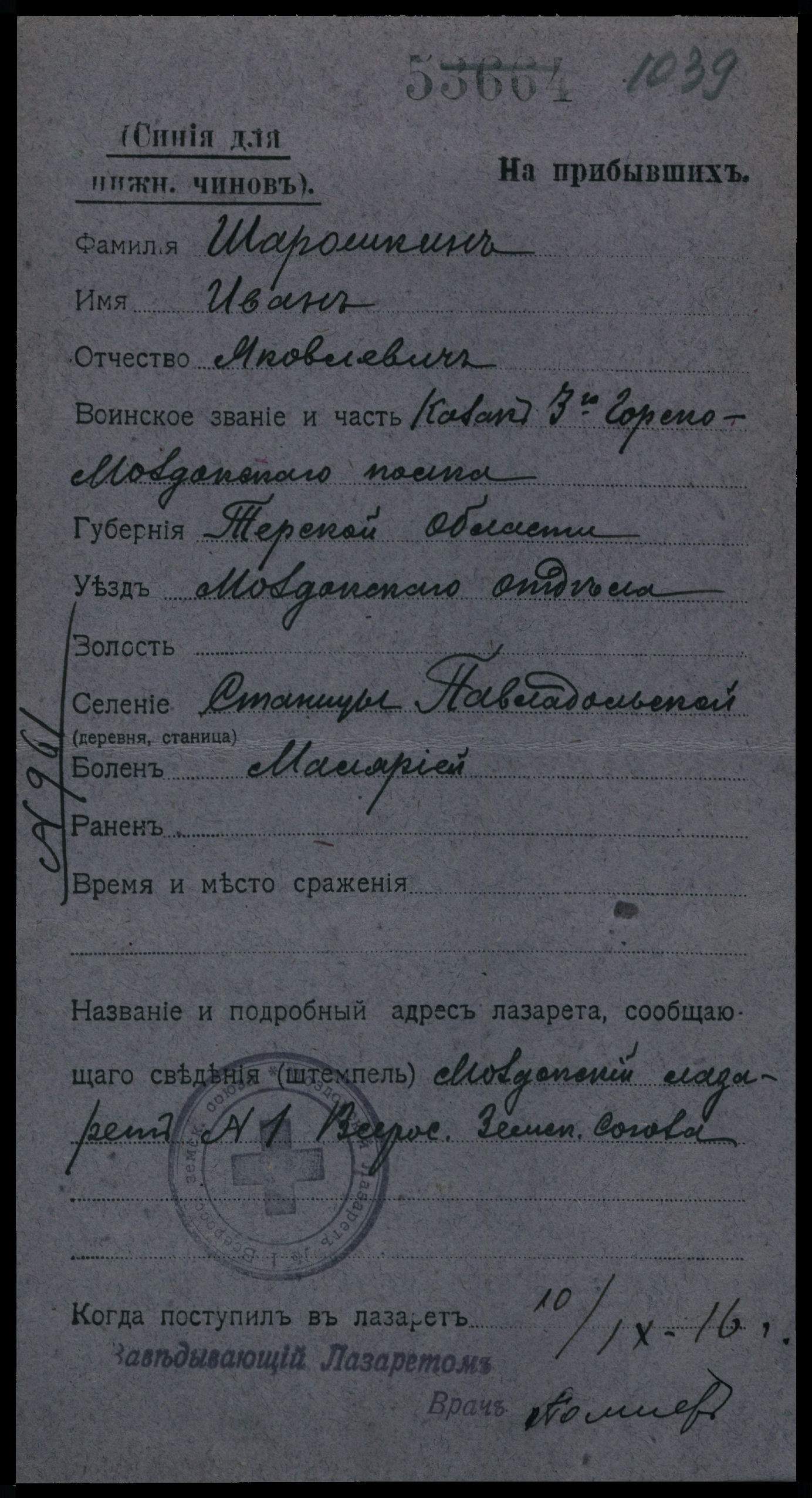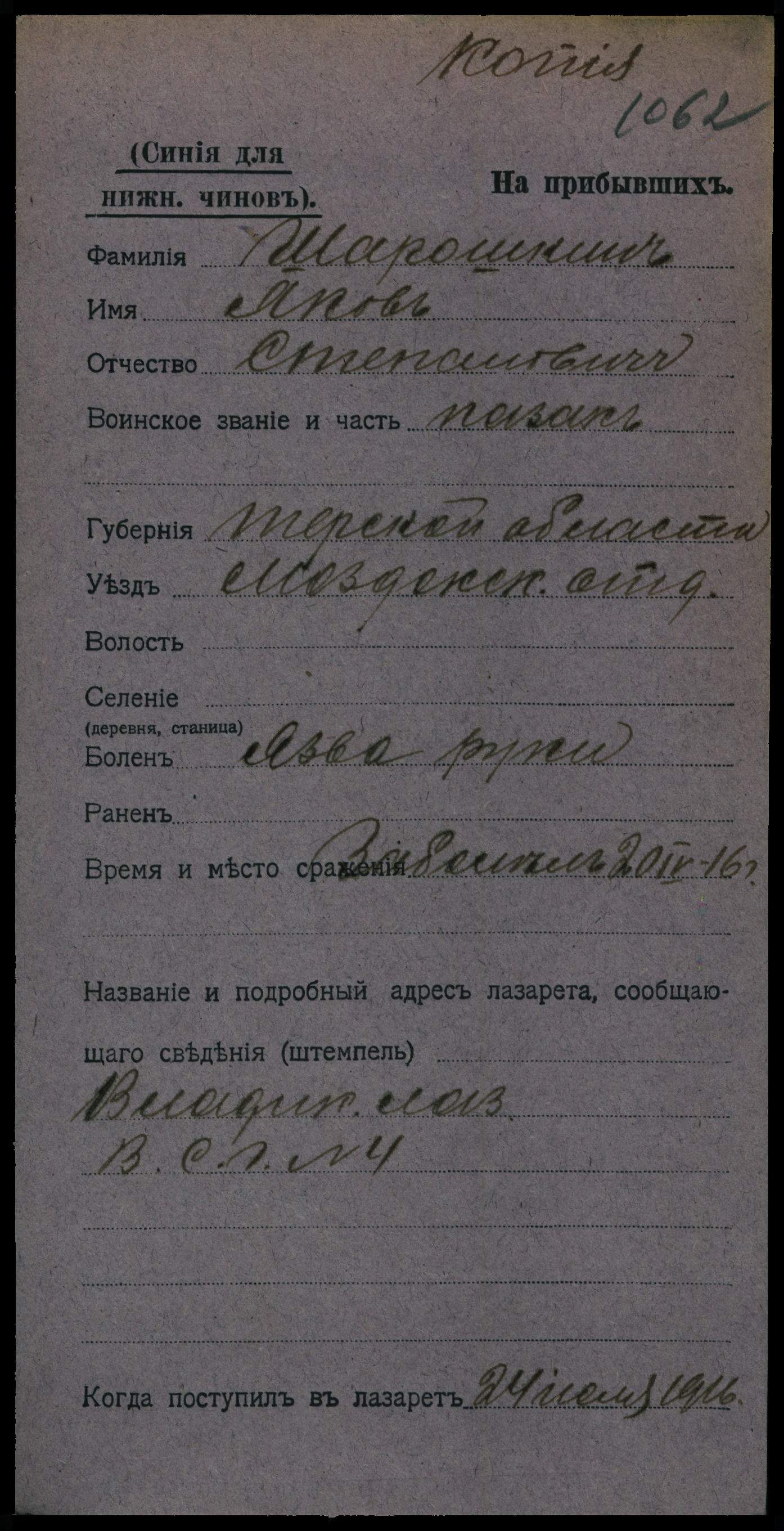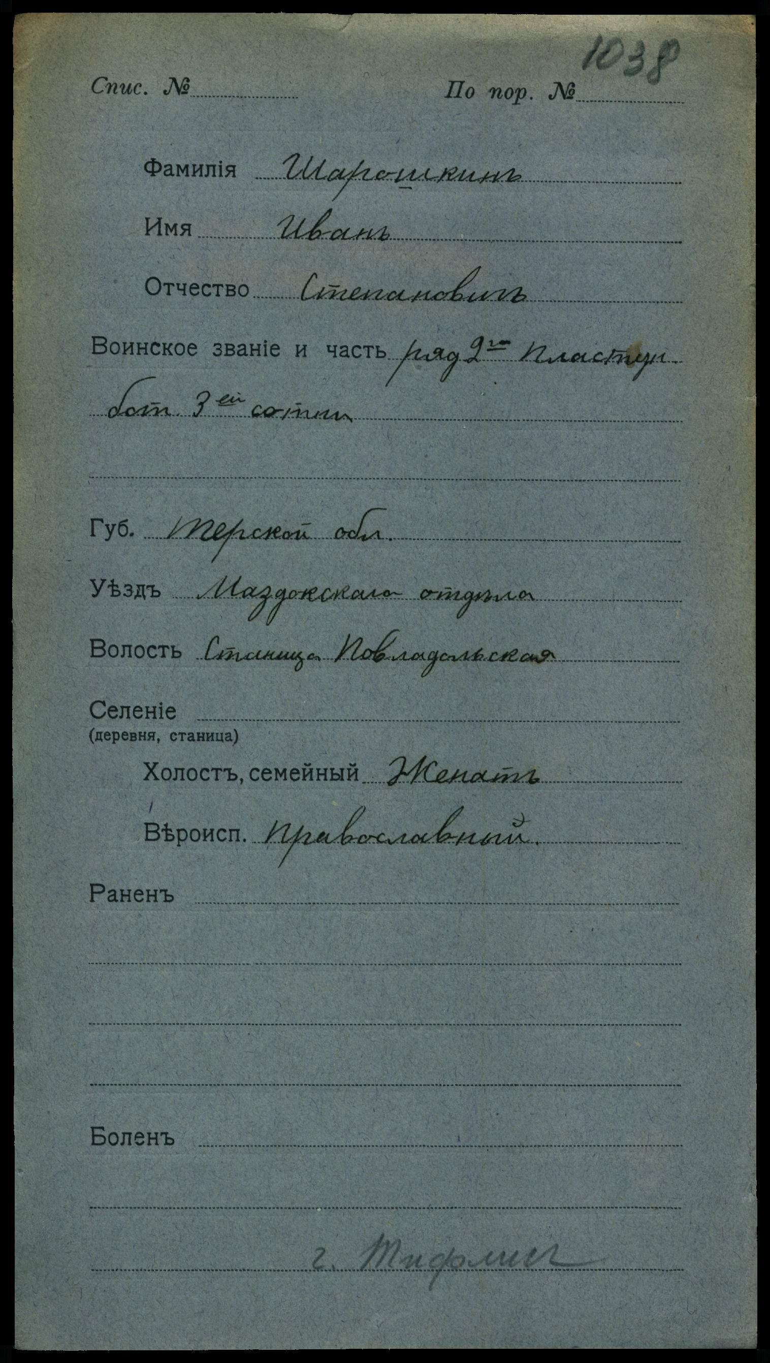 Родился в 1875 г., ст. Павлодольской; русский; церковный староста церкви. Проживал: ст. Павлодольс-кой.
