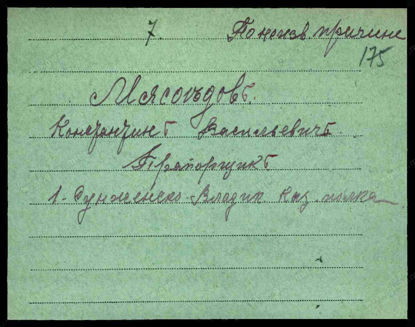 4 Казакъ приготовительнаго разряда Андрей Ивановъ Мясоѣдовъ 19