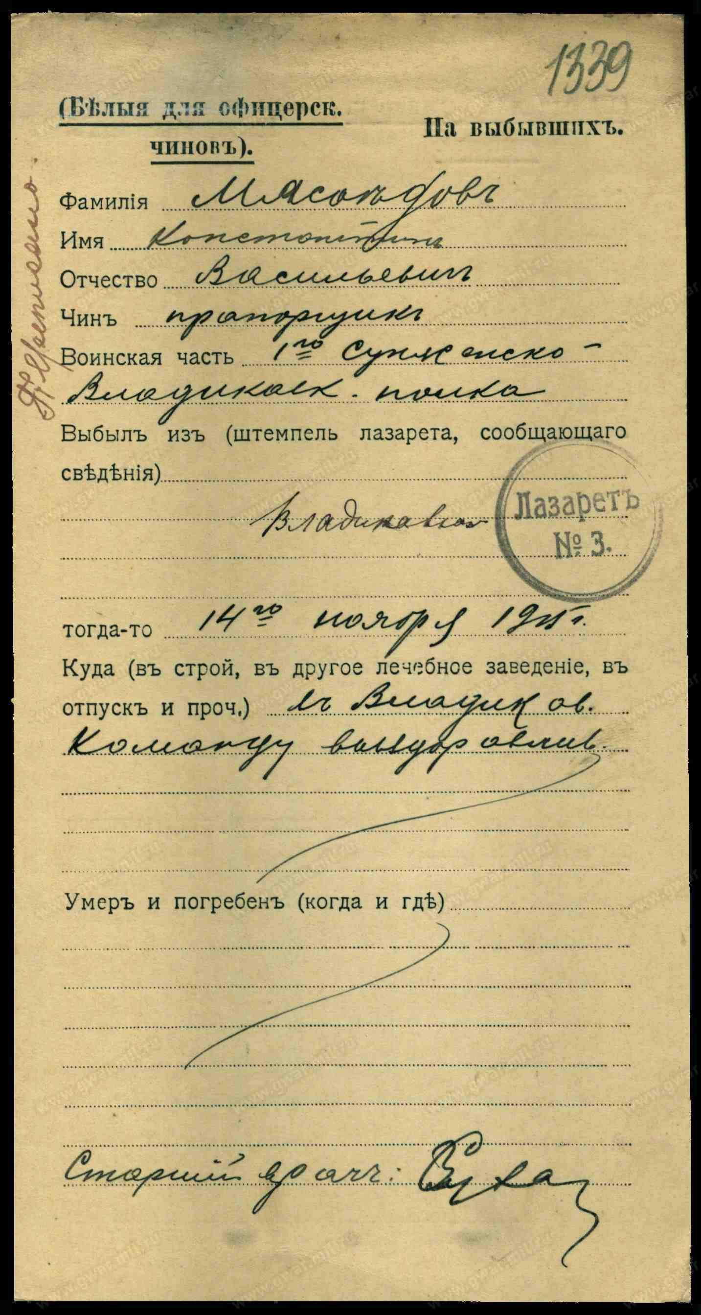 Нижніе чины ввѣреннаго мнѣ войска, поименованные въ прилагаемомъ при семъ спискѣ, согласно просьбъ ихъ и на основаніи положенія, объявленнаго при приказѣ по военному вѣдомству 1883 года за No 32, исключаются изъ войсковаго сословія Терскаго казачьяго войска съ ихъ семействами.