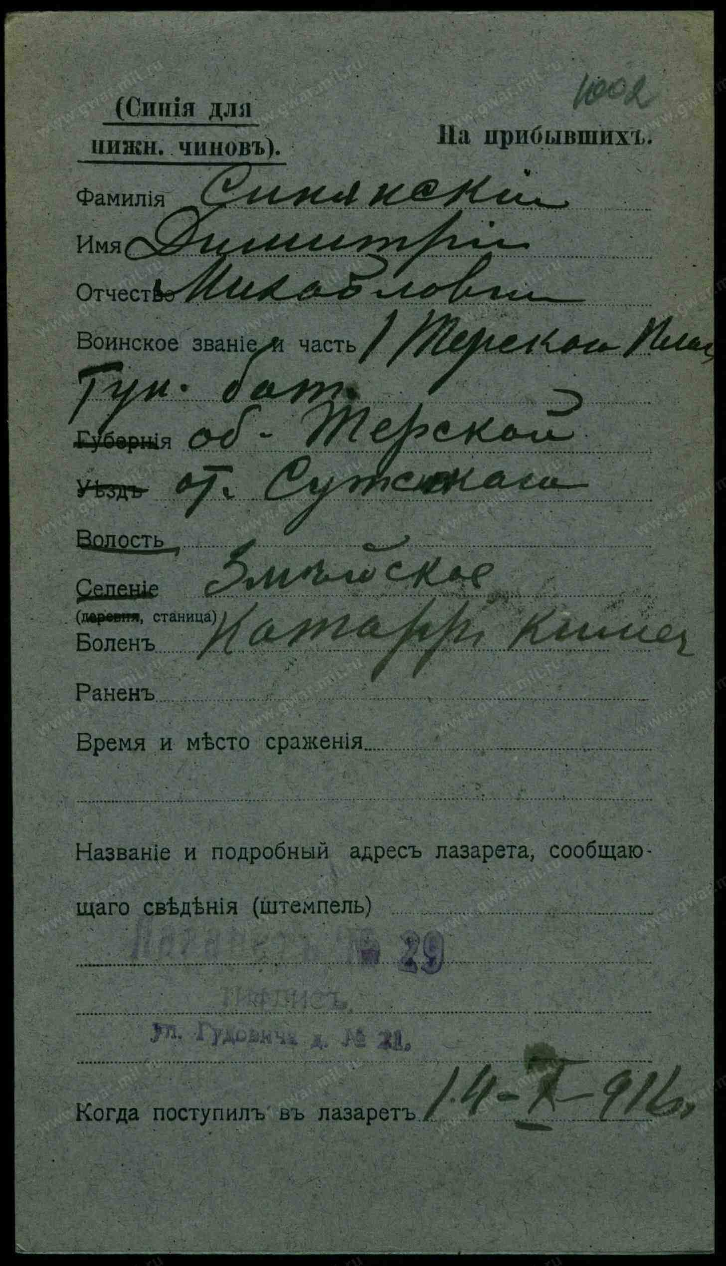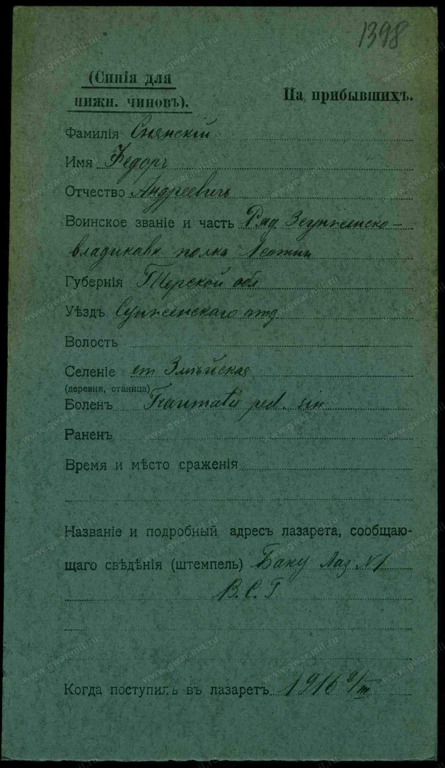 Красноармеец, __.__.1918 Северо-Осетинская АССР, Кировский р-н, ст-ца Змейская, Место службы: п/п 71990