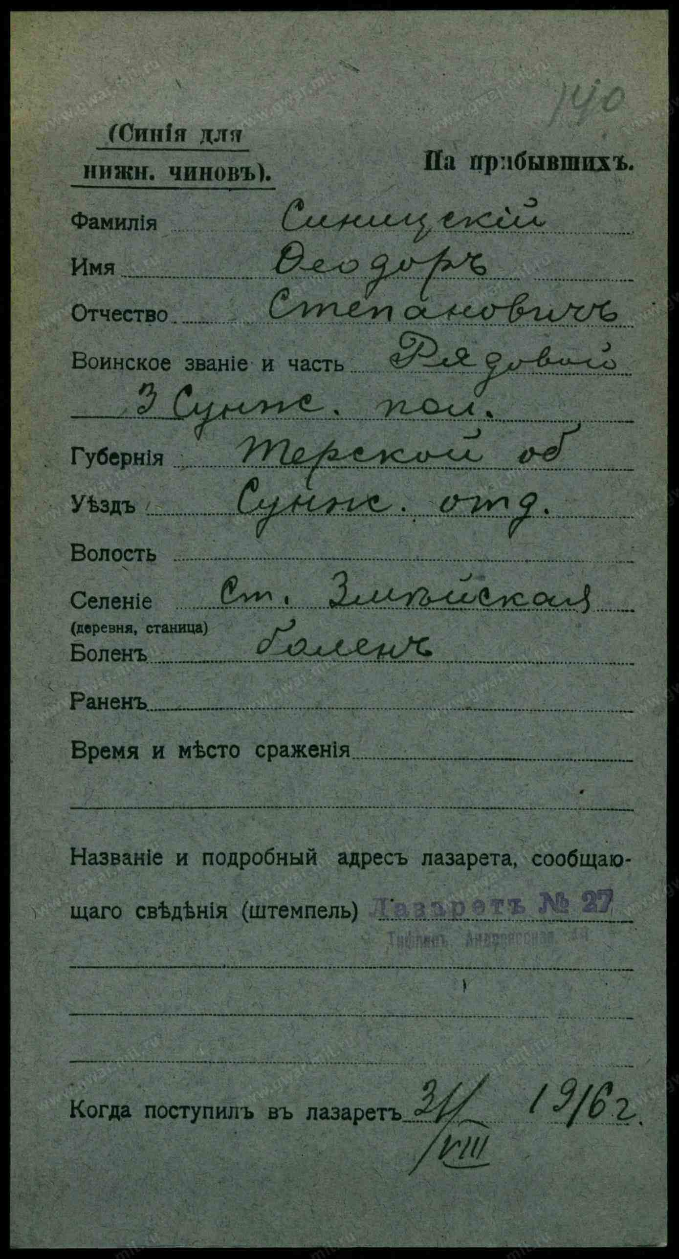Призывник, __.__.1927 Северо-Осетинская АССР, Кировский р-н, ст. Змеевская