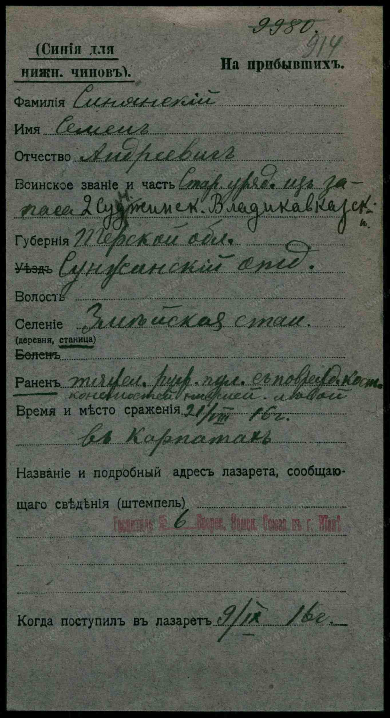 Жена: Синянская Пелагея Яковлевна ст. Змейская