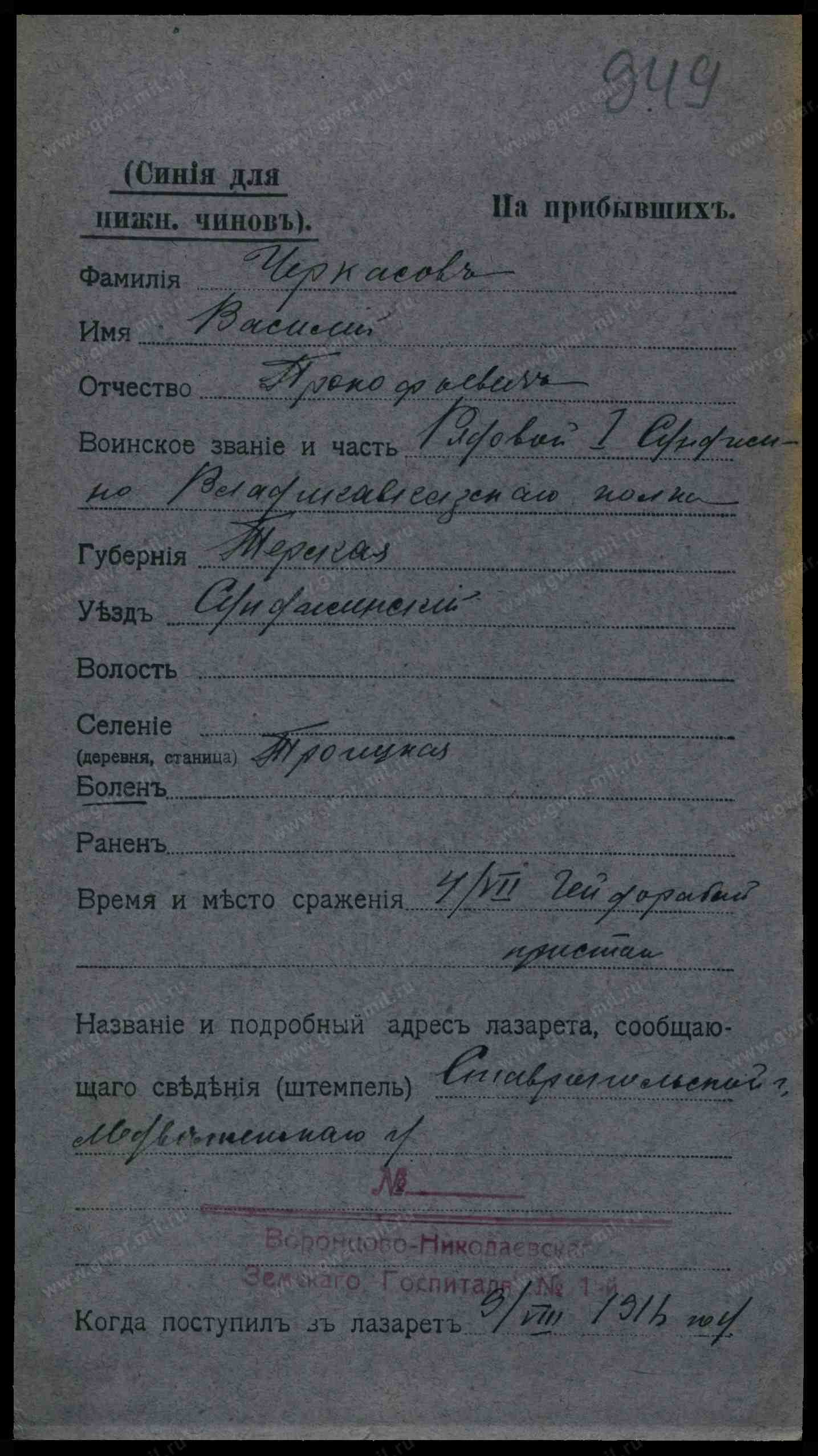 Преподание Архипастырского благословения и без грамоты: казаку Иоанну Чеботаеву за пожертвование в ту же церковь (ст. Троицкой) пелены на аналой из темно-синего бархата в 30 р. и такого же материала воздухов в 25 р., казачкам Ксении, Евдокии, Марии и Параскеве Поленниковым за пожертвование в ту же церковь воздухов темно-красного бархата с шитьем в 25 р., вдове подполковника Параскеве Прокоповой за пожертвование в ту же церковь воздухов белого бархата с шитьем в 25 р., казачке Евдокии Черкасовой за пожертвование в ту же церковь проволочного ажурно-газового венка на плащаницу в 17 р. и бывшему старосте казаку Филиппу Шляхову за пожертвование в ту же церковь чаши с кропилом, двух выносных подсвечника и панихидницы, всего на сумму 57 р.