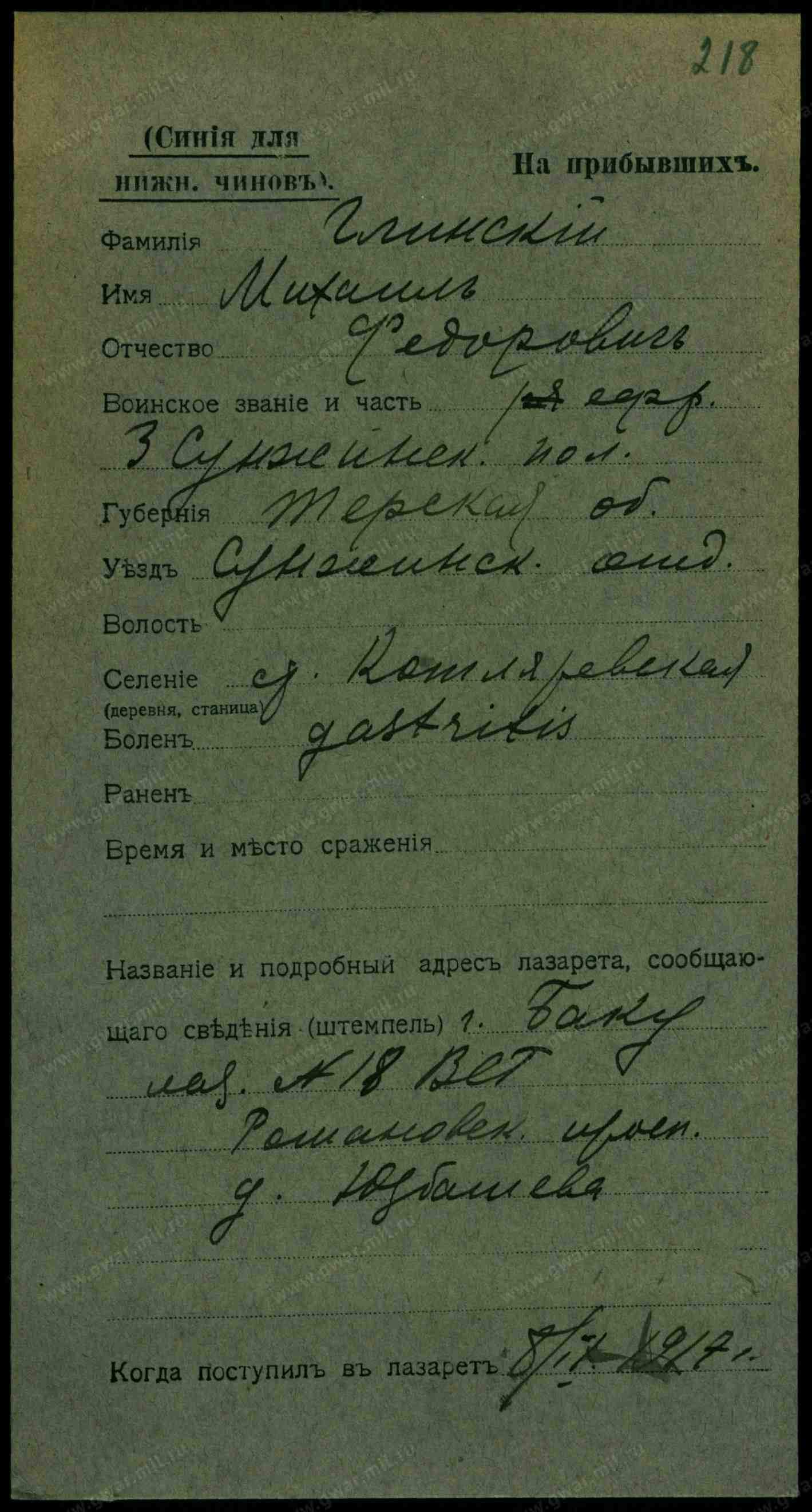 Состоящие в действующей армии в 2-м Сунженско-Владикавказском полку, казаки ст. Котляревской, вверенного мне 4 окр., вместе с их командиром сотни, графом Уваровым пожертвовали в свою приходскую церковь икону св. великомуч. Георгия Победоносца в киоте с лампадой, стоимостью до 150 руб. Прибитая к киоту с надписью медная пластинка гласит следующее: Икона сия сооружена в память великой второй Отечественной войны 1914—1915 г.г. старанием и средствами сражающихся за славу и честь великой России на полях далекой Галицкой Руси нижеследующих казаков 1-й сотни 2-го Сунженско-Владикавказского полка: командующий сотней граф Феодор Уваров, урядники - Константин Ананасенко (Георгиевский кавалер), Иван Васильев, Михаил Сахнов, Алексей Блоха, Иван Орел, Алексей Глинский, приказные—Григорий Семерня, Алексей Декаленко (Георгиевский кавалер), Дмитрий Рыбалко (Георгиевский кавалер), Иван Зайченко, — казаки — Дмитрий Иванов, Георгий Чурсин, Григорий Гончаров, Алексей Рыбалко, Сергей Орел, Николай Демин, Василий Безруков, Василий Игнатьев, Михаил Иванов, Павел Чикаленко, Константин Семерня, Иван Саломаха, Георгий Иванов, Григорий Блудов, Григорий Сидоренко, Иван Игнатьев, Михаил Турапа, Филипп Гончаров, Федор Васильев.