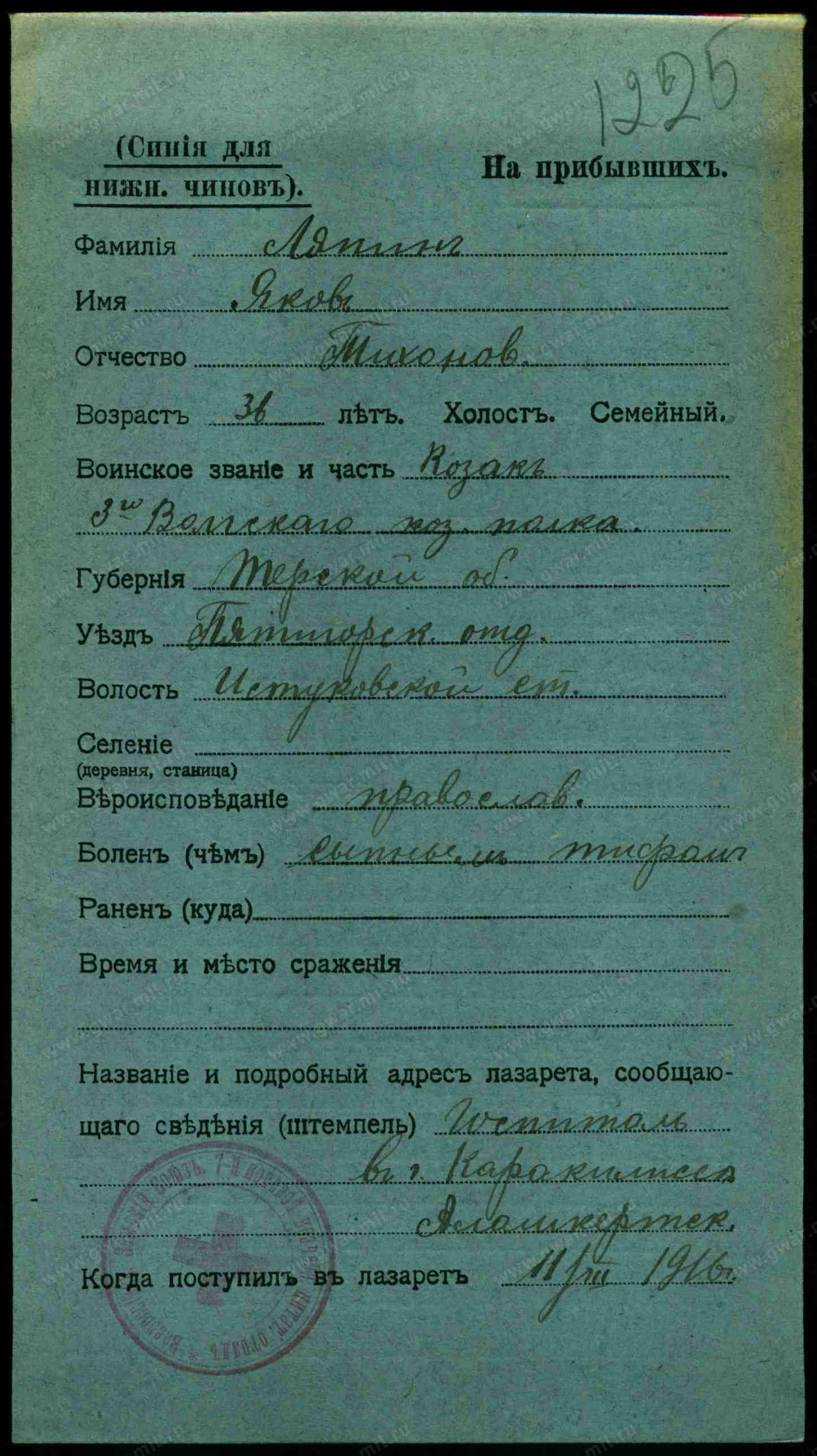 10) Ессентукской станицы, отставному уряднику Ивану Ляпину