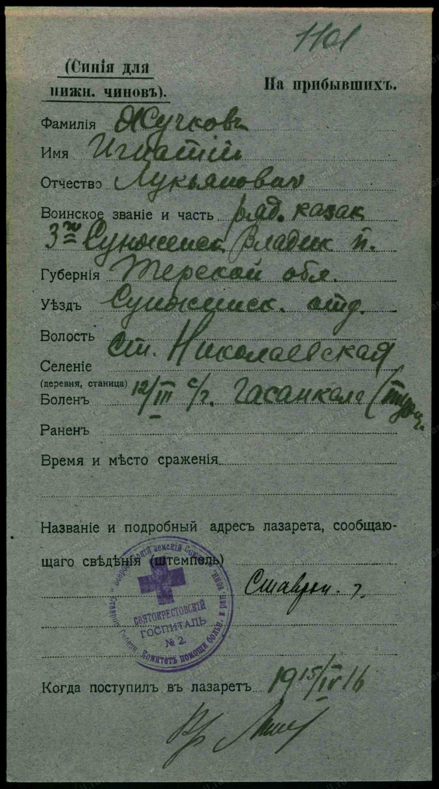 Место выбытия 192 полевой подвижной госпиталь, г. Станиславов