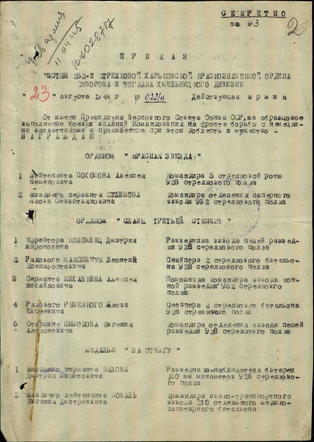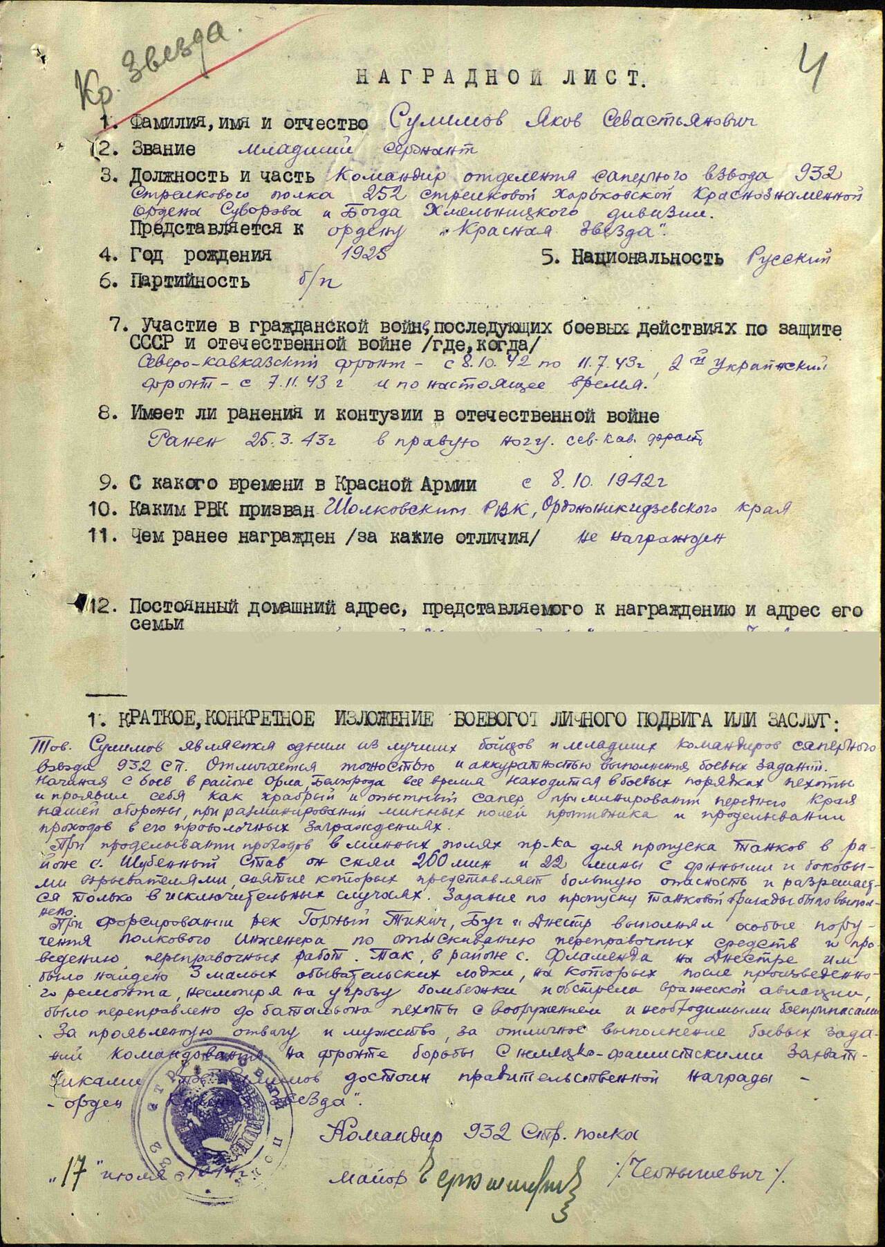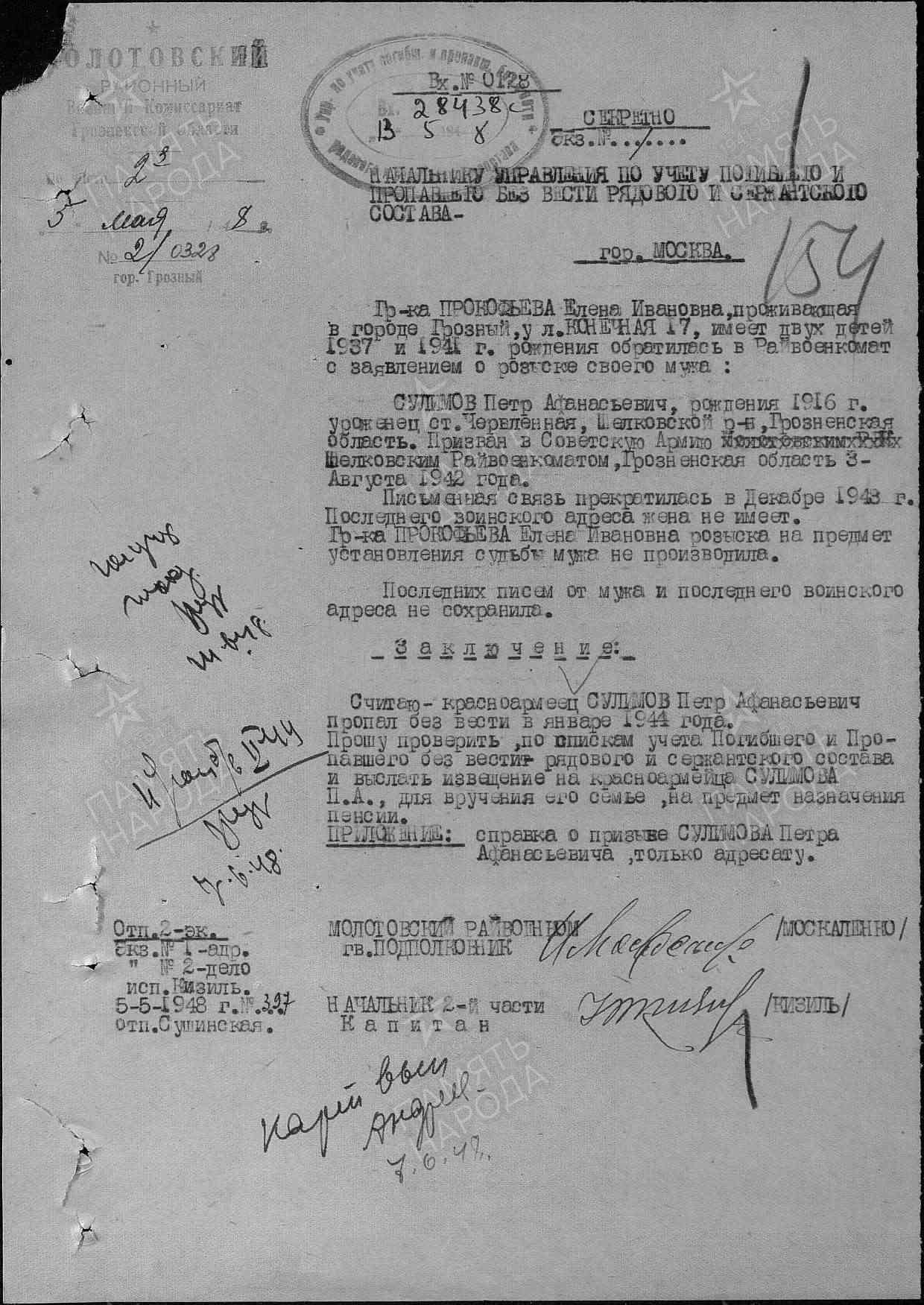 7. Сулимов Арефий Тиханов, племянник, 21 год, казак, родился здесь, на военной службе, отсутств., стар. закон. свящ., родной язык русский, неграмотный, казак.
