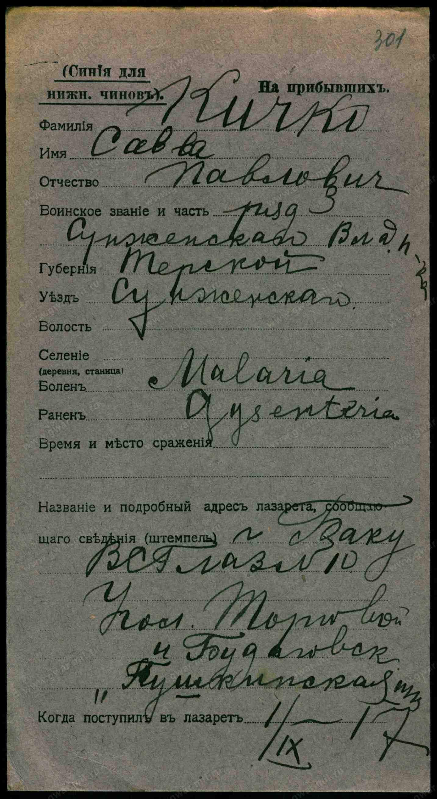 Красноармеец __.__.1914 Орджоникидзевский край, Дегорский р-н, с. Николаевка. Военно-пересыльный пункт