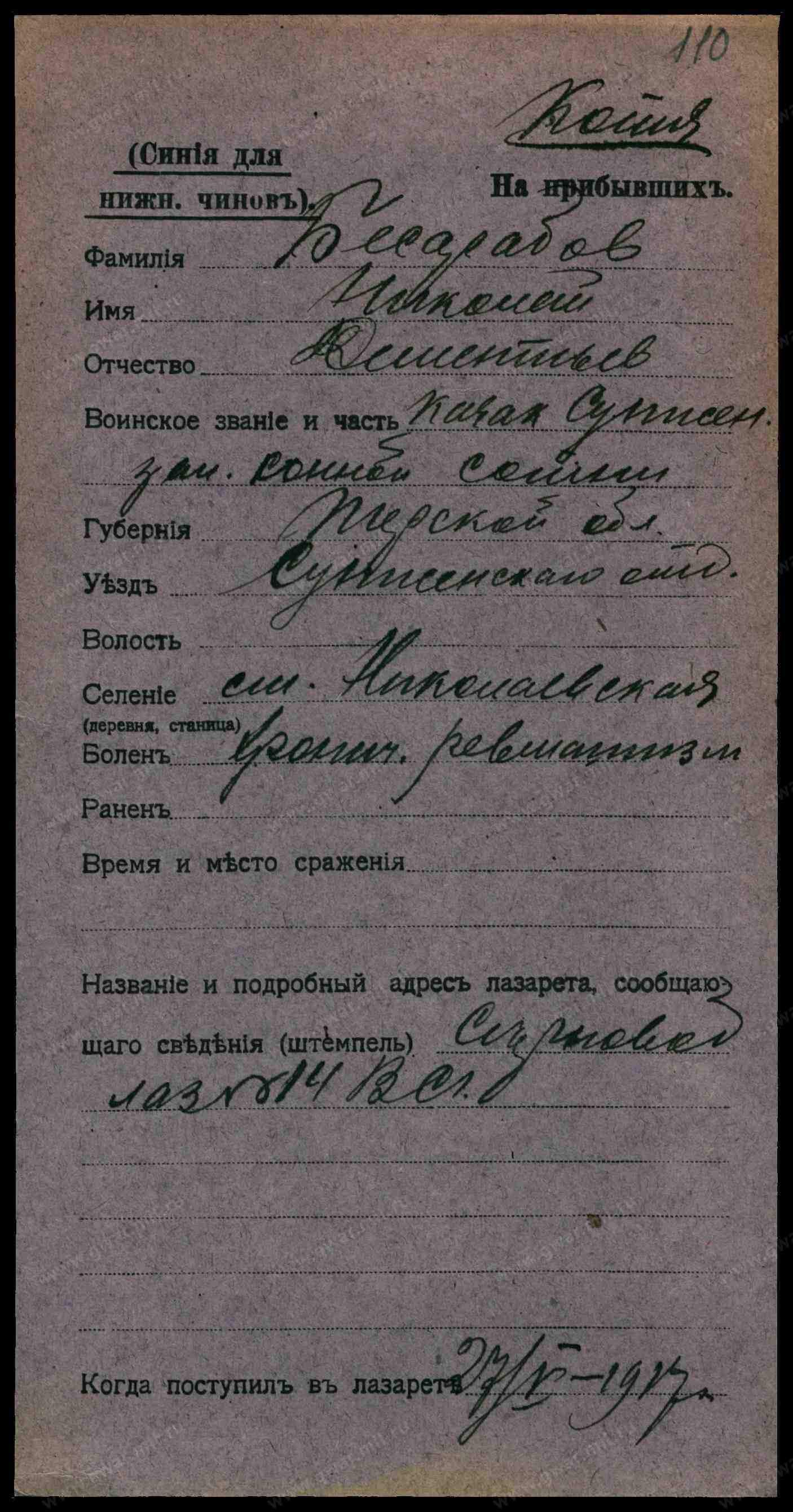 Гв. красноармеец __.__.1926 Северо-Осетинская АССР, Дигорский р-н, ст. Николаевка. Сводная картотека