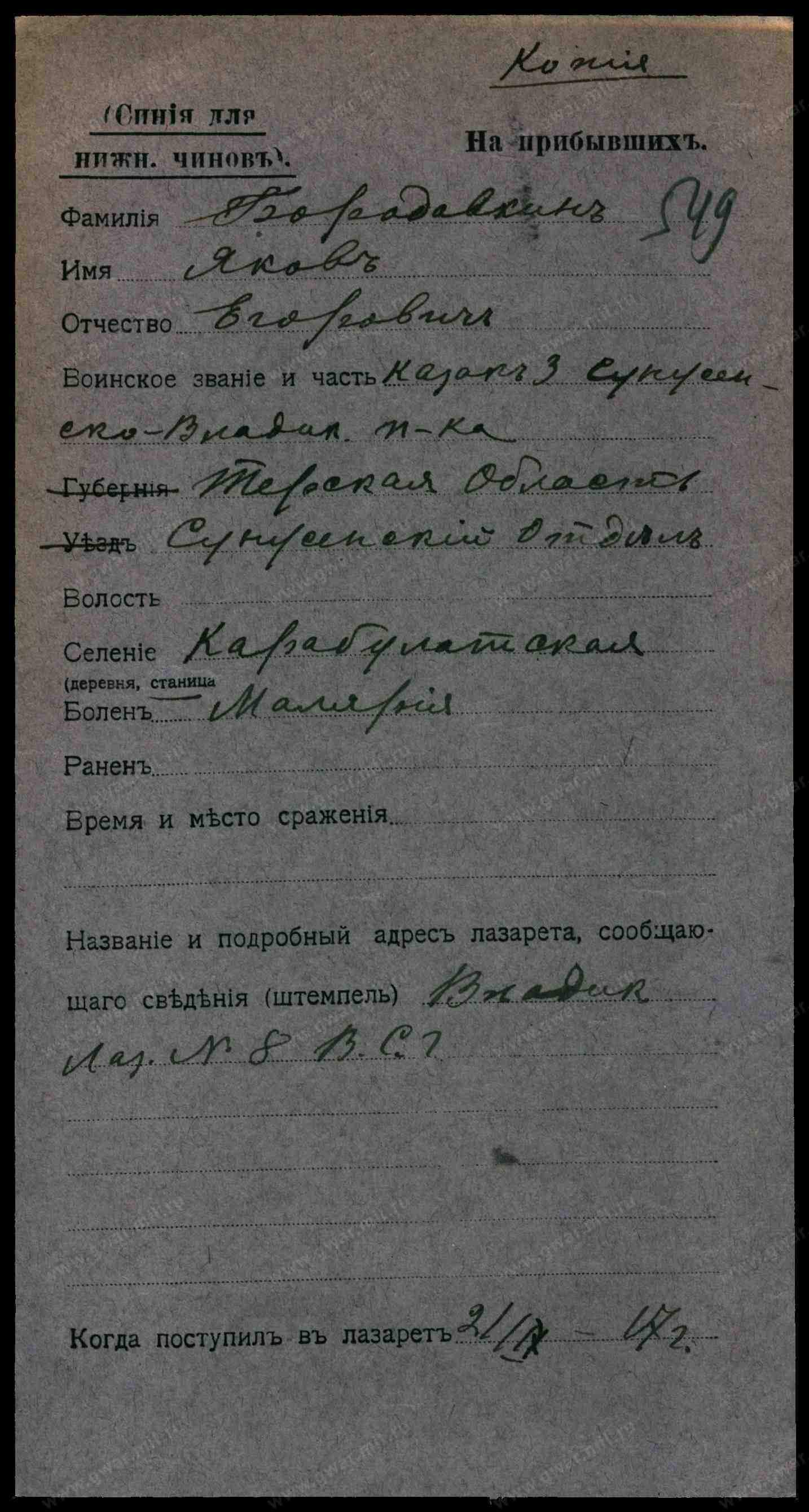 Место выбытия м. Бучач, 1 лазарет 71 пехотной дивизии