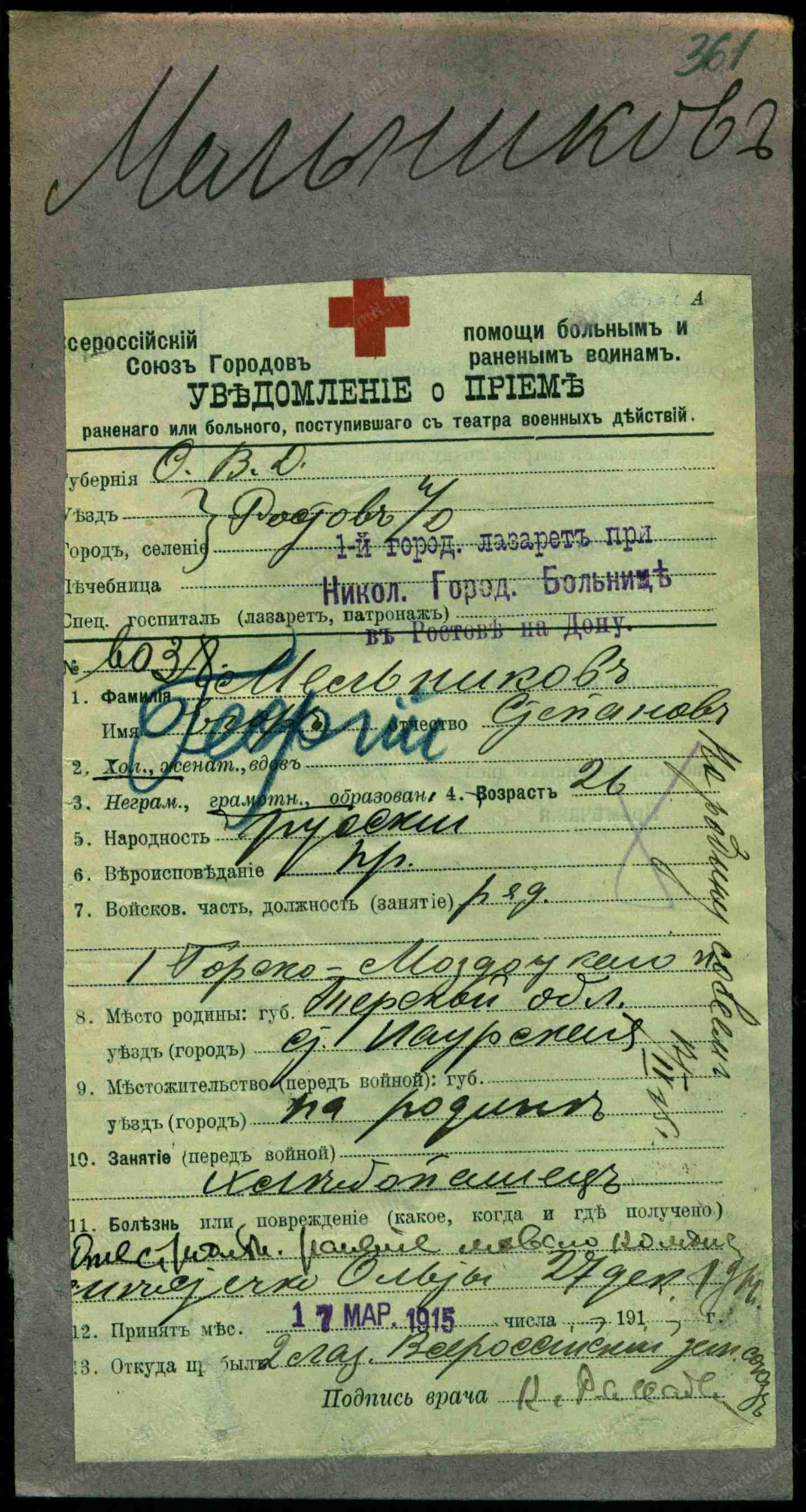 Отец: Мельников Семен Федорович ст. Орджоникидзевская